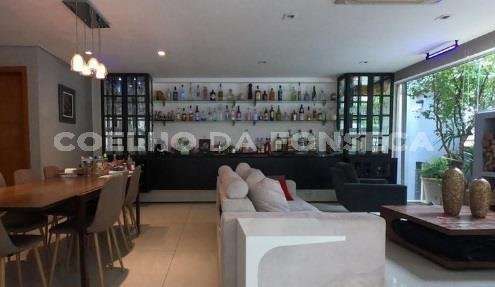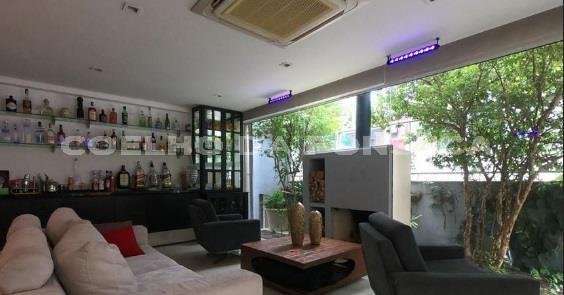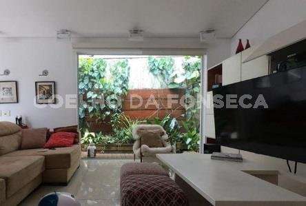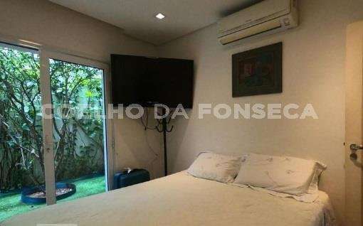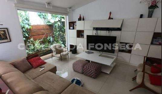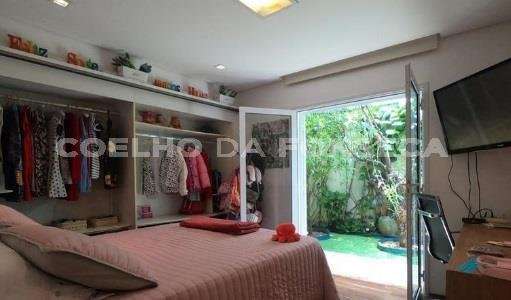 Casa térrea no Jardim Guedala. Possui 3 suítes, sendo a suíte master com closet, além de mais 2 dormitórios. Ampla sala e cozinha americana. Conta com um bar e iluminação de néon. A propriedade inclui piscina e forno.