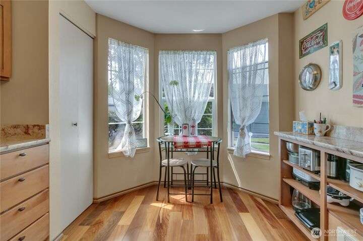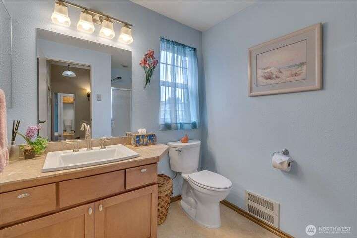 In the Desired Lakes Community, this great Townhome offers 3 bedrooms 2.5 baths, Kitchen has a pantry and bay window with eating space! All 3 bedrooms and laundry are upstairs. Primary bedroom has vaulted ceilings with a stylish bathroom. The 1 Car Garage has a storage loft space and there is 1 parking lot space (B5) and 1 storage space on the patio. The dining area has a sliding door to the patio, and living room opens to a large patio with a view of the Lakes. Close to the Green River Trail. Golf course and there are parks within walking distance. An absolutely peaceful and quiet setting in a well looked after community. The Compex has new exterior paint, new gutters and new eves. New surface on streets and parking areas.