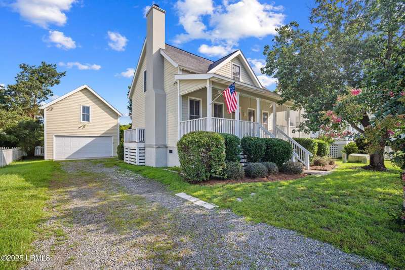 Conveniently located in the desirable neighborhood of Battery Point, this 2,060 sq ft home offers 4 bedrooms and 2.5 baths with a bright and airy open floor plan. The primary suite is located on the first floor, and the spacious living area features a fireplace with a tile surround. Enjoy Lowcountry evenings from the charming front porch with a swing or entertain on the back deck overlooking the partially fenced yard. A detached two-car garage includes a versatile flex space, perfect for a workshop, studio, or home office. Battery Point is a welcoming, walkable community offering exceptional amenities such as a community dock and boat launch, pool, playground, tennis courts, oyster pavilion, and scenic walking trails-perfect for outdoor living and relaxation. This material is based upon information, which we consider reliable, but because it has been supplied by third parties, we cannot represent that it is accurate or complete, and it should not be relied upon as such.