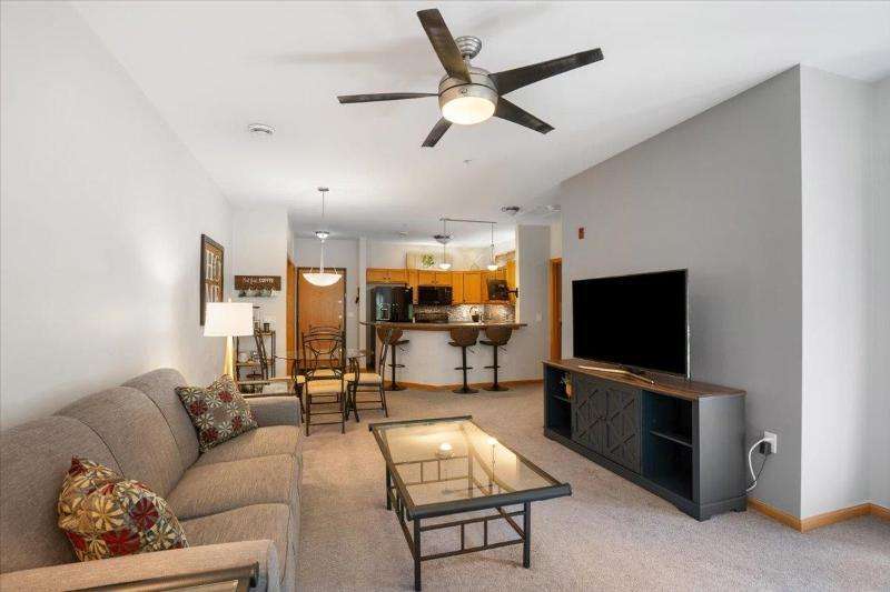 Showings begin August 15th: Super cute, move-in ready near west side condo! This 1st-floor unit offers an open layout and a private patio with southern exposure overlooking green space--plus bonus access to an additional outdoor area that's rarely used by others. The spacious living room allows for a flexible office or rec room setup, and the large bedroom opens directly onto the patio. Modern updates include smart light switches, a smart thermostat, and many updated fixtures throughout. Additional features include in-unit laundry, underground parking, a private storage unit, building security system, elevator access, and a brand-new roof in 2024!