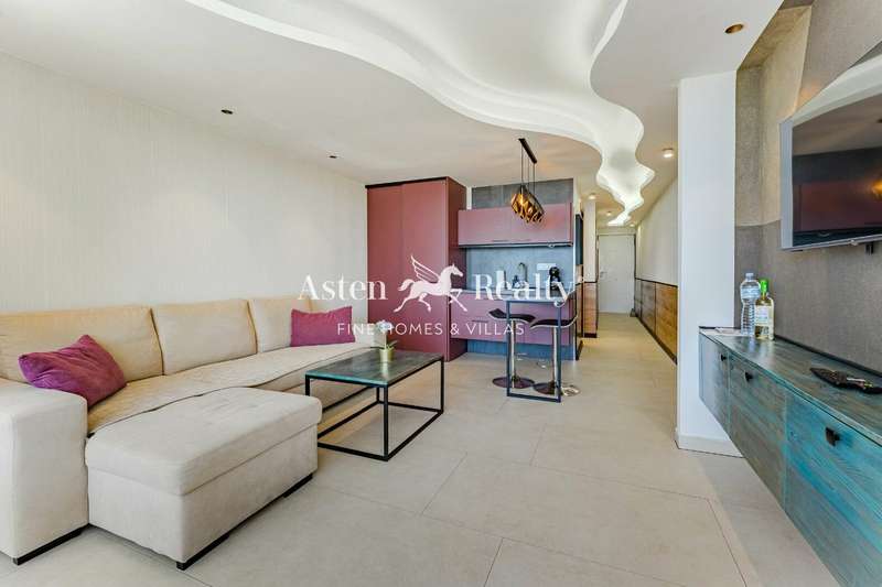 The property features a modern, functional design and offers a well-distributed layout: a separate bedroom, an open-plan fully equipped kitchen, a stylish bathroom, and a bright living room with direct access to a private terrace with stunning sea views.