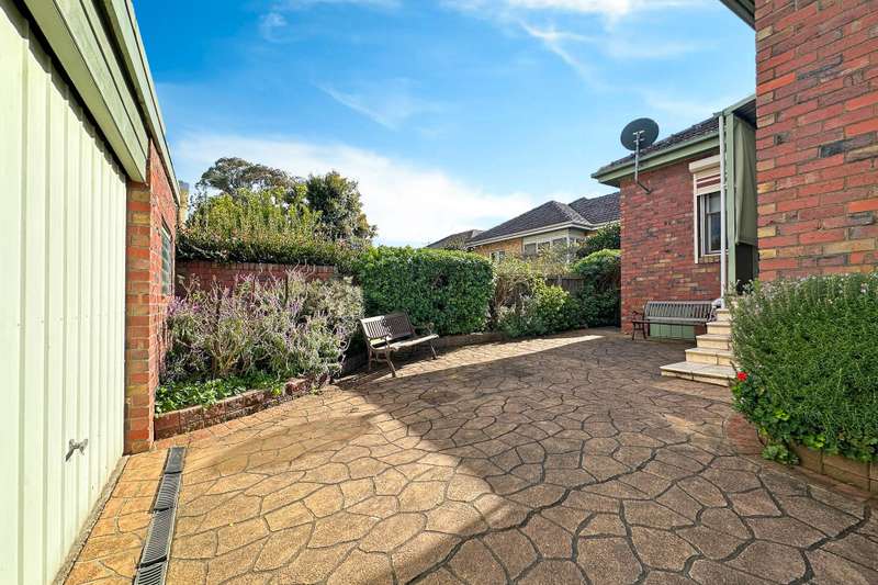 Experience inner town living with a difference at this exclusive address boasting a premium position that's just a short stroll to restaurants, cafes, shopping precinct, park land and walking track. Being offered for sale the first time in over 45 years, this long-term family ownership classic clinker brick veneer home offers comfortable and relaxing living complete with sealed rear laneway access. Comprising 4 bedrooms and two bathrooms, the striking residence also includes a formal lounge with double doors, separate and very spacious formal dining room, rear located open plan family / meals arrangement, galley style timber kitchen, gas heating and split system heat and cooling. Other notable features include decorative cornice, picture rails, timber flooring and three chimneys. Maintaining a high level of privacy amidst a mature garden setting, externally you will enjoy the large concrete paved entertaining area, expanse of lawn, enclosed rear yard and garage with workshop. Being offered for sale with manicured gardens, this well maintained and well-presented home in a superb location is a unique offering and deserves your consideration when looking for your next real estate investment. It's central convenience in a private setting.