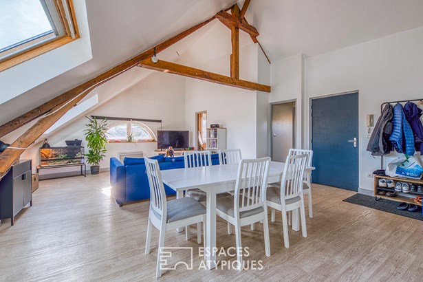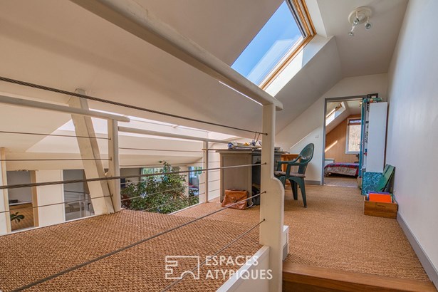 This loft with light distributed by the numerous openings in the roof does not forget the functionality necessary for such a living space.