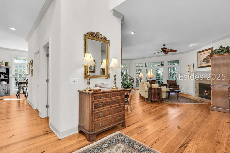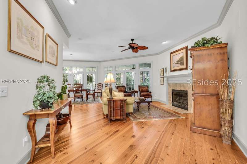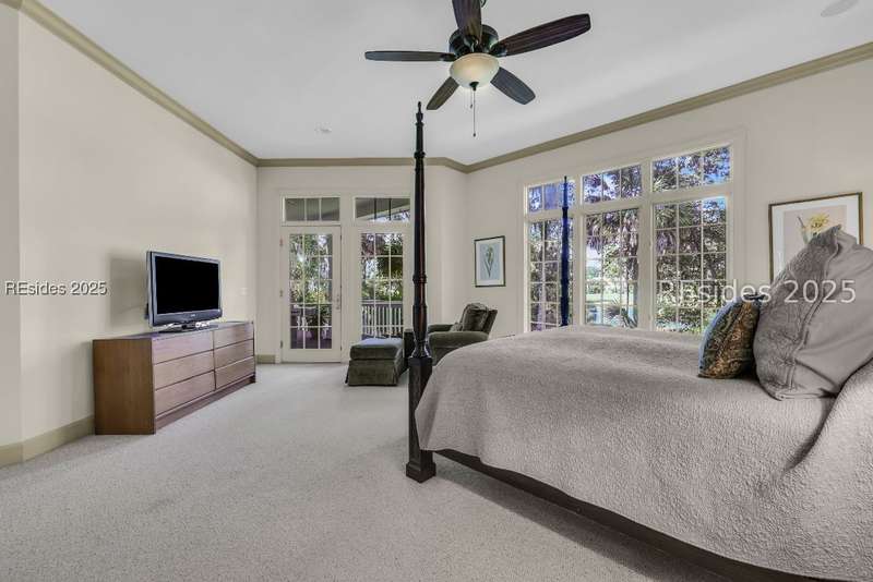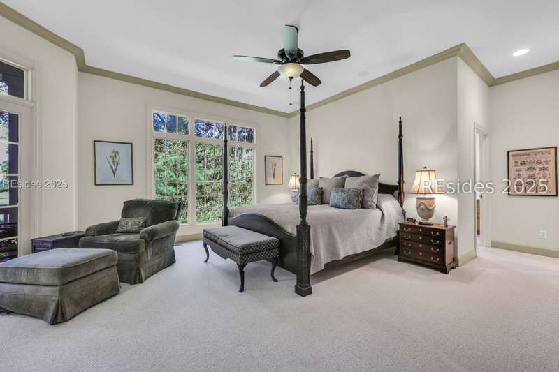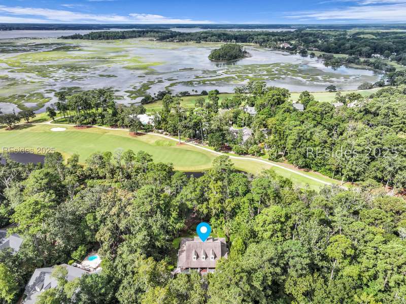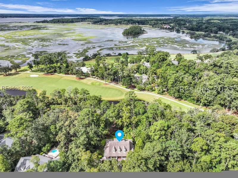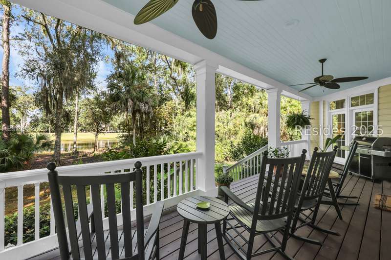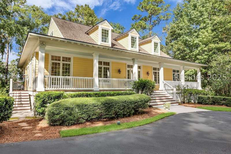 Nestled on a private one-acre homesite, this 3-bedroom, 2.5-bath Lowcountry-style home offers 3,300 sq. ft. of timeless charm and modern comfort. A sweeping front porch welcomes you into an inviting two-story layout featuring hardwood floors, a cozy gas fireplace, and abundant natural light throughout. The main level boasts a spacious office and a primary suite with a well-appointed bath, providing convenience and comfort all on the first floor. Open living and dining spaces flow seamlessly to the large back porch, where spectacular lagoon and golf course views create the perfect backdrop for relaxing or entertaining. Upstairs, additional bedrooms offer privacy and flexibility for family or guests. A detached two-car garage adds convenience and storage. Perfectly blending Lowcountry character with modern updates, this home provides the space, privacy, and lifestyle that makes Callawassie Island so special. The heart of the community is the Tom Fazio-designed 27-hole golf course, comple