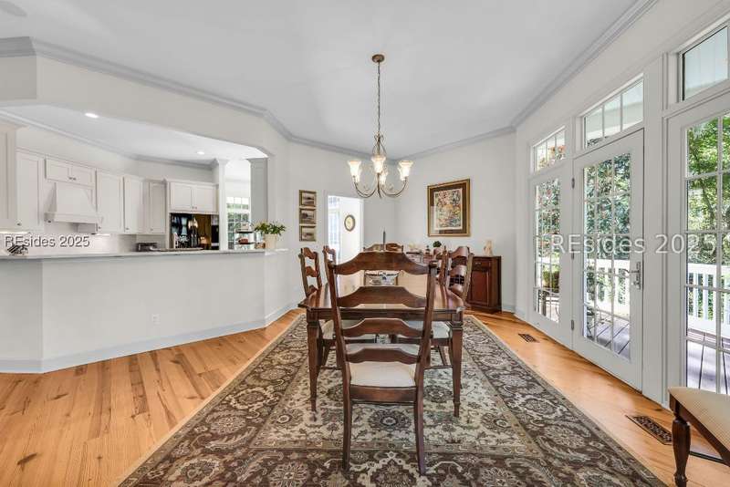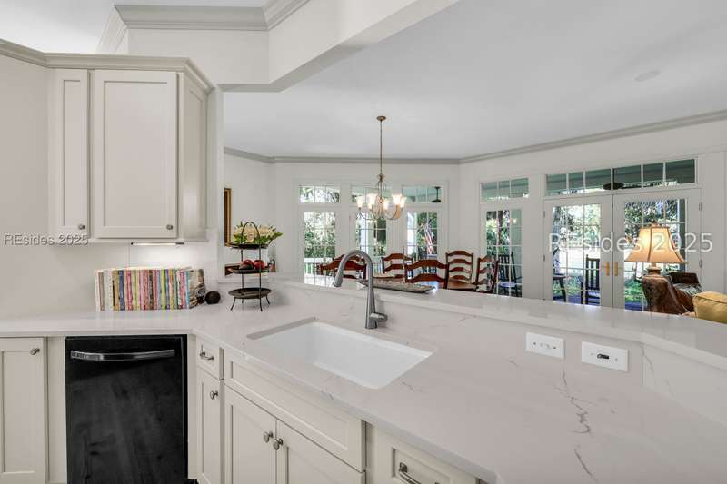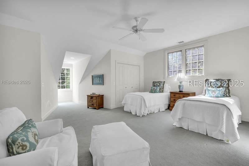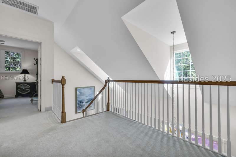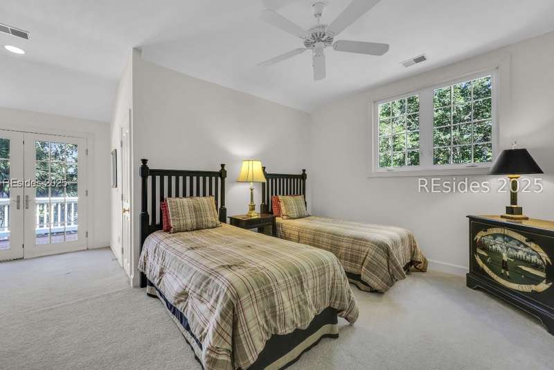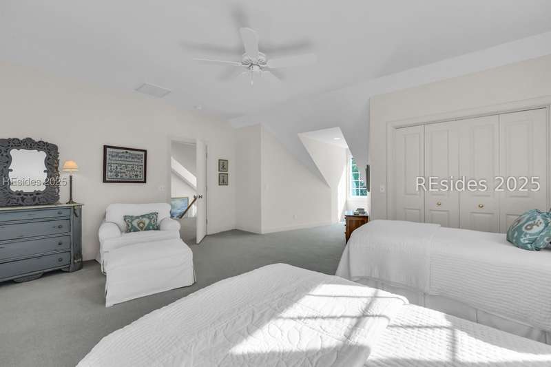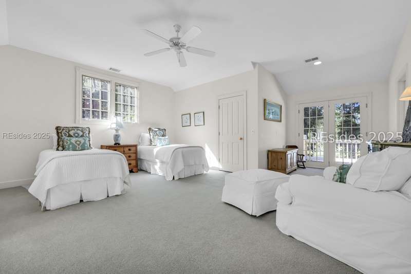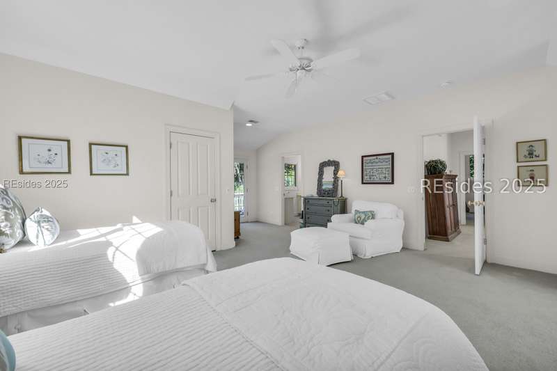 Nestled on a private one-acre homesite, this 3-bedroom, 2.5-bath Lowcountry-style home offers 3,300 sq. ft. of timeless charm and modern comfort. A sweeping front porch welcomes you into an inviting two-story layout featuring hardwood floors, a cozy gas fireplace, and abundant natural light throughout. The main level boasts a spacious office and a primary suite with a well-appointed bath, providing convenience and comfort all on the first floor. Open living and dining spaces flow seamlessly to the large back porch, where spectacular lagoon and golf course views create the perfect backdrop for relaxing or entertaining. Upstairs, additional bedrooms offer privacy and flexibility for family or guests. A detached two-car garage adds convenience and storage. Perfectly blending Lowcountry character with modern updates, this home provides the space, privacy, and lifestyle that makes Callawassie Island so special. The heart of the community is the Tom Fazio-designed 27-hole golf course, comple