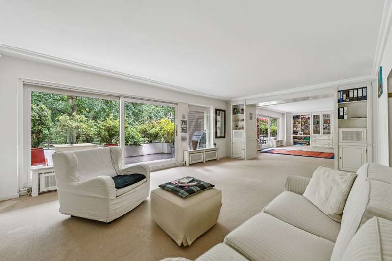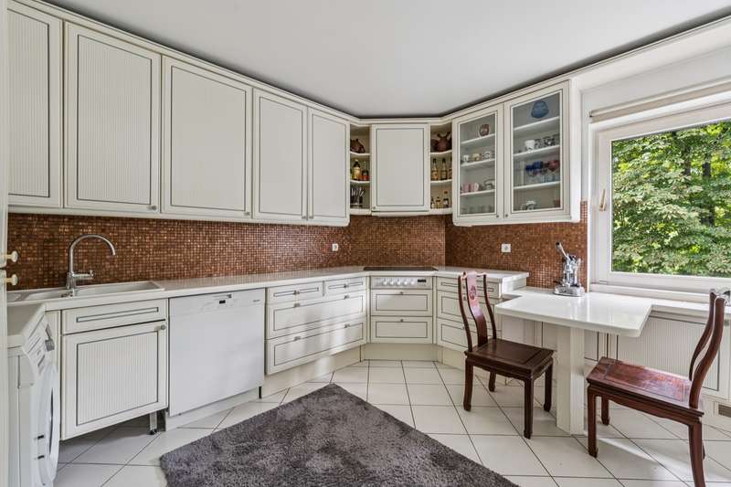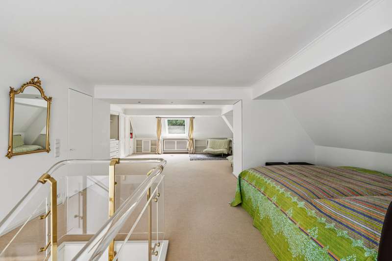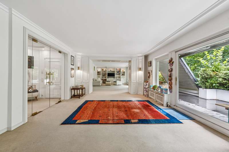 In one of Berlin's most sought-after residential areas - the traditional and green Dahlem - this exclusive penthouse presents itself as a stylish retreat for discerning buyers. The generous living space of approx. 152m², the high-quality furnishings and a well thought-out room layout make this apartment a rare opportunity in a prime location. The special atmosphere of this property becomes apparent as soon as you enter: bright rooms, classic elegance and an open feeling of space characterize the entire living concept. The central living and dining area with its large windows is flooded with light and inviting - a place for sociable evenings, relaxing hours and enjoyable living. From here, you can access the wonderful roof terrace with a view of the greenery - an oasis of peace in the middle of the city. The apartment has two comfortable bedrooms that offer plenty of space for personal design, as well as two tastefully furnished bathrooms that meet modern requirements. An architectural highlight is the studio in the upper area, which can be reached via an elegant, bright solid stone staircase with an acrylic staircase - a versatile room with a special flair. Whether as a studio, home office or retreat for creative moments - individual living dreams can be realized here. Built in 1983, the property is in excellent condition and is surrounded by extensive, lovingly landscaped gardens. Two underground parking spaces not only offer convenient parking, but also underline the high standard of this apartment. The underground garage is very spacious overall and can also be retrofitted with charging facilities for electric vehicles in the future. The apartment also has a large, locked cellar room that offers additional storage space. A communal laundry room is also available and completes the property's well thought-out range of amenities. All terraces in the building are currently undergoing extensive refurbishment; the work is expected to be completed in around four weeks The neighborhood is characterized by tranquility, security and a stylish living environment - a harmonious overall picture that is convincing both as an exclusive primary residence and as an elegant second home. Conclusion: This extraordinary penthouse combines spaciousness, brightness and the highest quality of living in one of Berlin's most sought-after locations. Convince yourself of the special charisma of this property - we look forward to presenting this unique home to you in person.