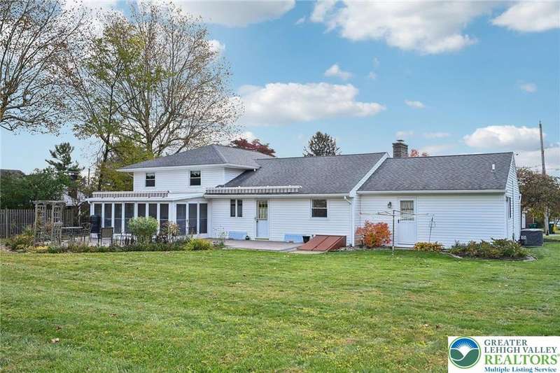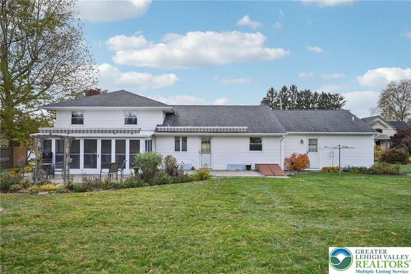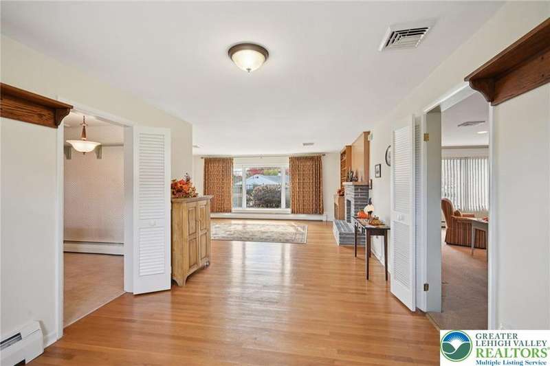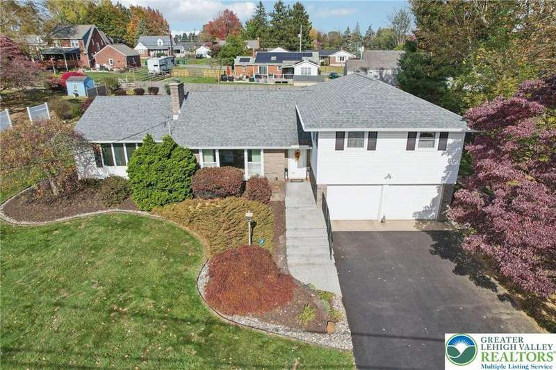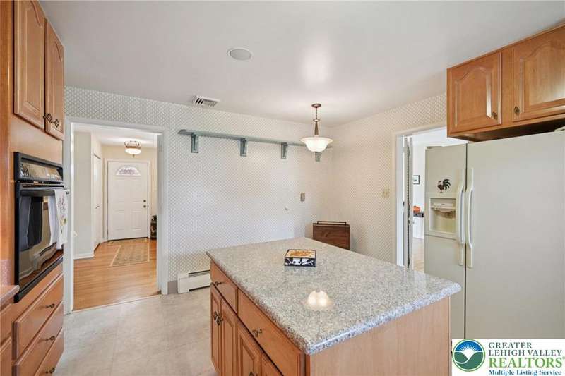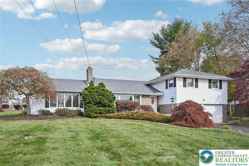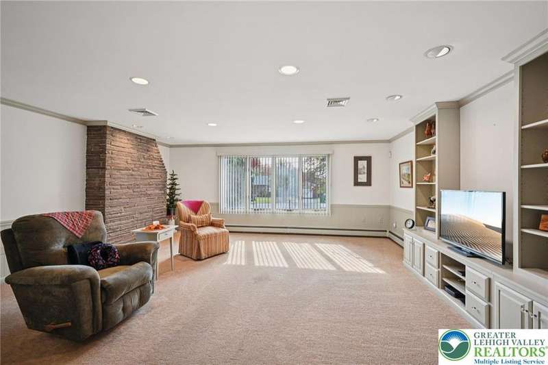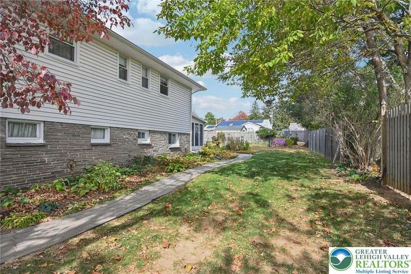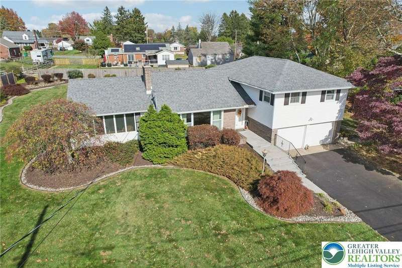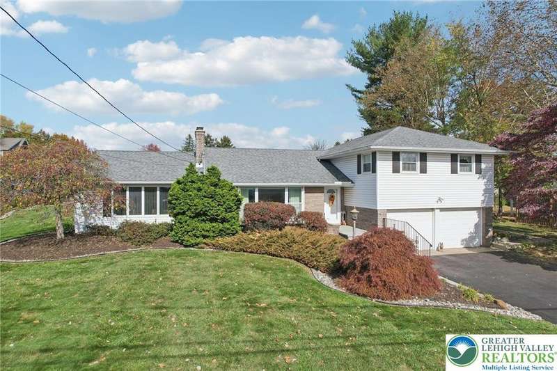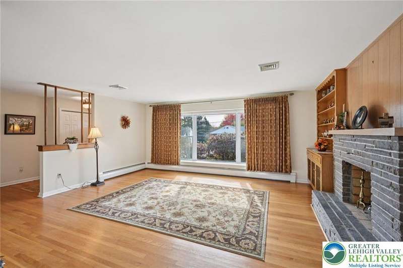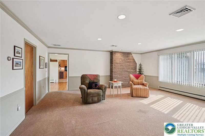 This is the special home everyone looks for. Gleaming hardwood floors and spotless condition. Hard to find a better cared for home. The solid structure of stone and vinyl is both appealing and maintenance free. The hardscape/landscape stone paver entrance into the flagstone foyer and immediately overlooking a gorgeous living room, stone fireplace, built in bookcase and beautiful windows everywhere is the wonderful first impression. Beautifully remodeled light stain wood cabinets, center island, pantry, and great counter space is a wonderful update. An addition that creates a first floor family room, 1/2 bath, 1st floor laundry with access to the beautiful backyard is an incredible feature. The bedrooms are all nice size, there's a primary bedroom and bath that is also renovated with walk in shower and vanity and a wall full of closet space. Cedar closet in the hall. There's also a lower level rec room, with more closet space, another 1/2 bath and access to 2 car garage and walk out to sunroom, with wonderful stone tile floor that continues outside and creates an outdoor paradise overlooking a beautiful yard just as manicured as the interior of this home. Take advantage of spotlights, awnings, dining areas, so you can always enjoy your backyard. There's also an additional basement level for storage, utilities and an new bilco door providing convenient access to the back yard. . There is so much to see in this truly special home it's a "must see" on your list.