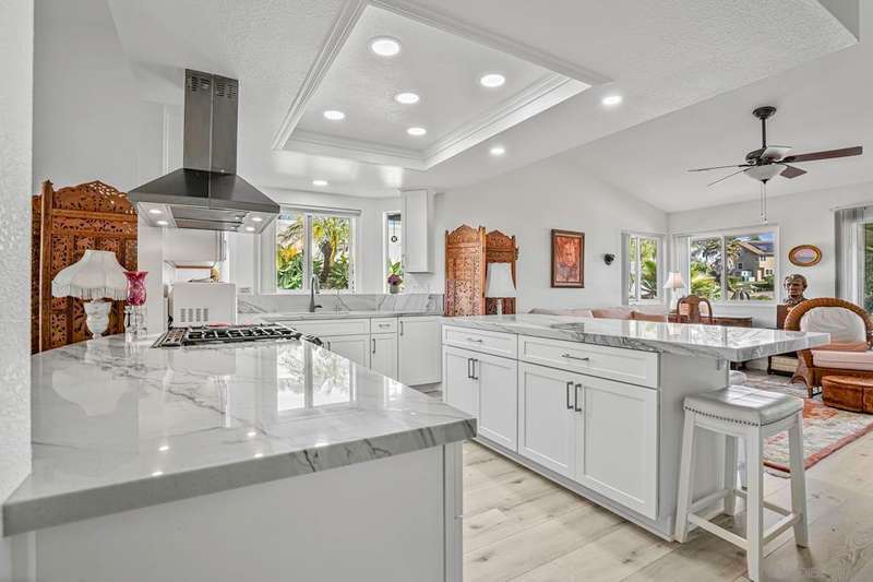 UPGRADED SINGLE-STORY! LARGE LOT! Situated on nearly a quarter-acre, this beautifully remodeled 3-bedroom, 2-bathroom home offers modern living and privacy. The open-concept design features cathedral ceilings, wide-plank vinyl flooring, and a cozy gas fireplace framed in marble. The chef-inspired kitchen boasts black stainless steel appliances, natural white quartzite counters, a 6-foot island with an extended overhang, pendant lighting, and a pantry with soft-close drawers and doors. Retreat to the spacious primary suite with a completely updated bathroom, dual-sink vanity, and designer finishes. Both bathrooms have been tastefully remodeled with new lighting, mirrors, and fixtures. Additional upgrades include dual-pane windows, recessed lighting with dimmers, new HVAC and water heater (2023), a new roof (2023), interior and exterior paint, and paneled doors throughout. Step outside to a low-maintenance yard with desert landscaping, drip irrigation, mature fruit trees and plenty of space for entertaining--or potential RV parking or an ADU. No HOA! Conveniently located near Alamosa Park and Alamosa Park Elementary School.