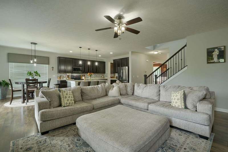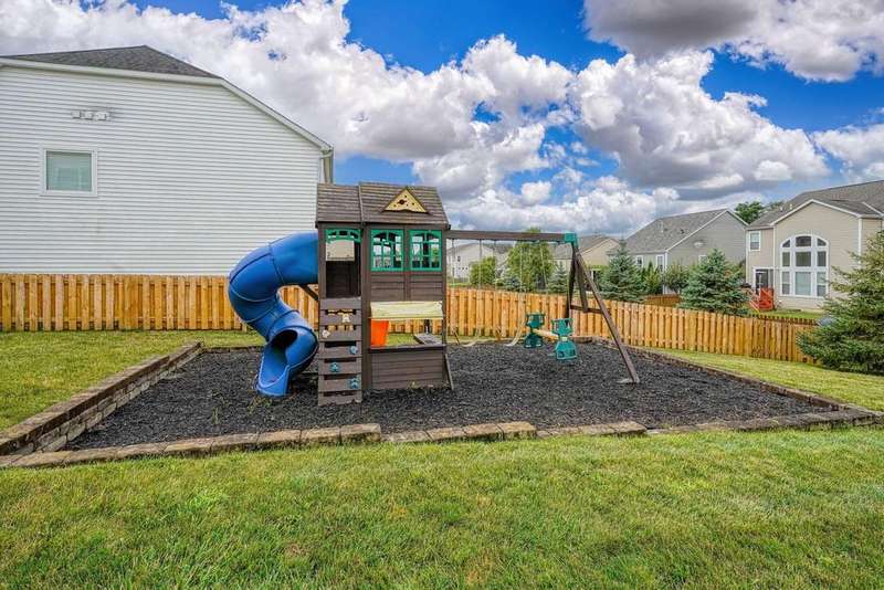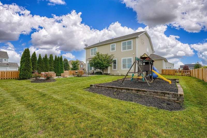 Welcome home to this stunning, 4 bedroom, 3.5 bath home! This home offers a large family room with gas fireplace. Spacious dining room w/ hardwood flooring! The gorgeous kitchen boasts upgraded cabinetry, lg island, hardwood flooring, pantry and butler pantry! Large eating space too! FF Den w/built-ins and mud room also w/built-in cabinetry! Lg owners suite and 3 additional bedrooms, including one with a private bathroom! Full basement and 3 car garage! Enjoy your days outdoors on the paver patio while overlooking the private backyard with playset! This home is amazing! Super clean, well-kept, and truly a must see!