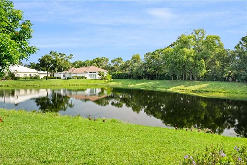 Elegance with modern renovations Featuring light, neutral vinyl floors, soaring 12' ceilings in the main living areas, and 10' ceilings throughout the rest of the home, this residence is filled with natural light from abundant windows. The updated kitchen showcases white quartz countertops and stainless steel appliances. Floor plan includes a formal dining room, living room, and family room, plus 4 bedrooms and 3.5 baths. One bedroom is an en suite ideal for a nanny or in-law quarters, while another bath serves as a cabana. Enjoy tranquil lakefront views, beautiful mature landscaping, a 2021 roof, and complete hurricane panels. Community amenities include a clubhouse, pool, tennis, fitness center, and optional golf club with cafe/sports bar, Fine dining on 2nd floor, 2 pets any size allowed. Other features, 3 car garage, Larger Laundry room. Dbl door entry, Gorgeous Chandliers, lighting and fans. 2 zone AC.