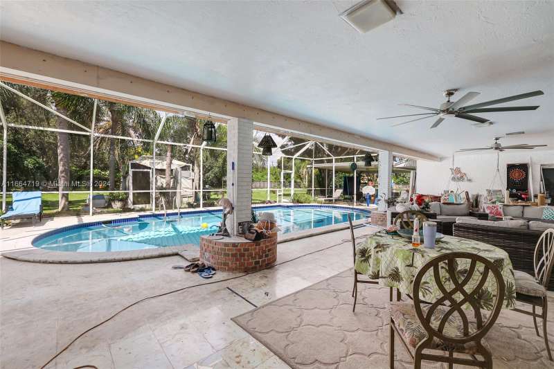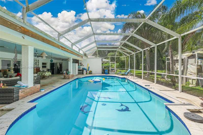 With 4 bedrooms, 3 bathrooms, and a Bonus Room/Den on over 1.2 acres, this home offers something for everyone. Enjoy barbecuing around the Chicago Brick Grill and relaxing by the pool in the large screened patio. Enthusiasts will love the private pickleball court. There’s plenty of space for gatherings with a large living room and formal dining room. Supermarkets, stores, and dining are conveniently located within a mile. There is ample space for recreational vehicles, with parks and marinas within 11 miles. For those who love gardening, there's plenty of room to plant fruit trees. Two double-car garages provide the perfect space for storing your prized vehicles. The Sports Complex is only 0.5 miles away. Upgraded with impact pocket doors, wrap-around glass, a 2020 roof, A/C, and more!
