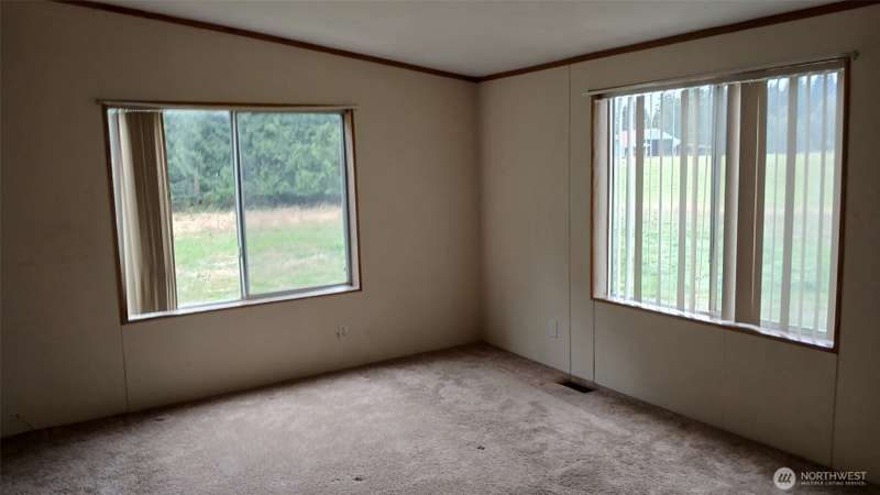 Large double wide mobile home sitting on 5+ acres. Property fronts on 212th St N.E. Property is half cleared and half treed. Great territorial view. Home is 1782 sqft and features 3 bedrooms and 2 full baths.