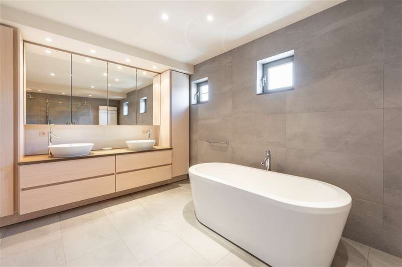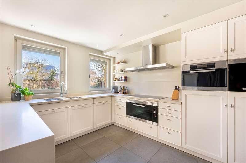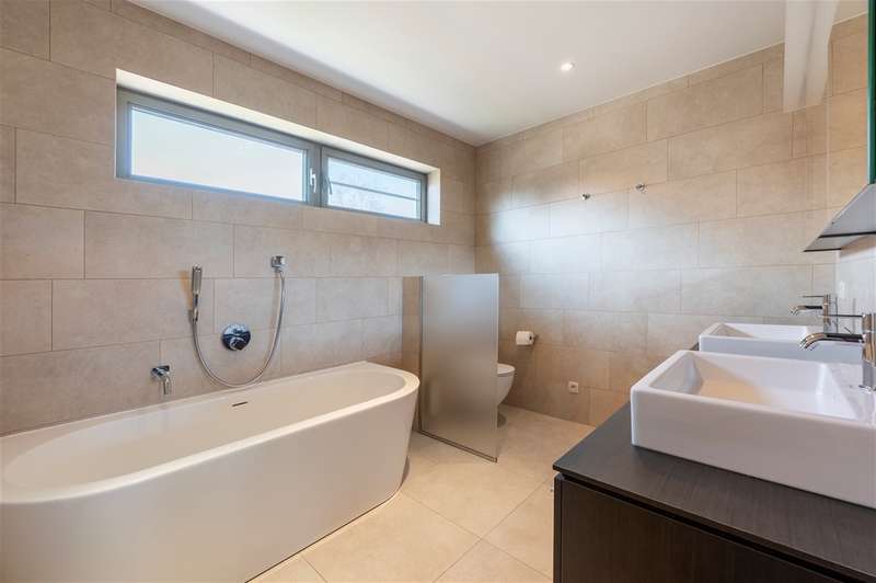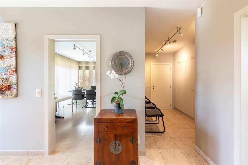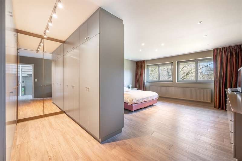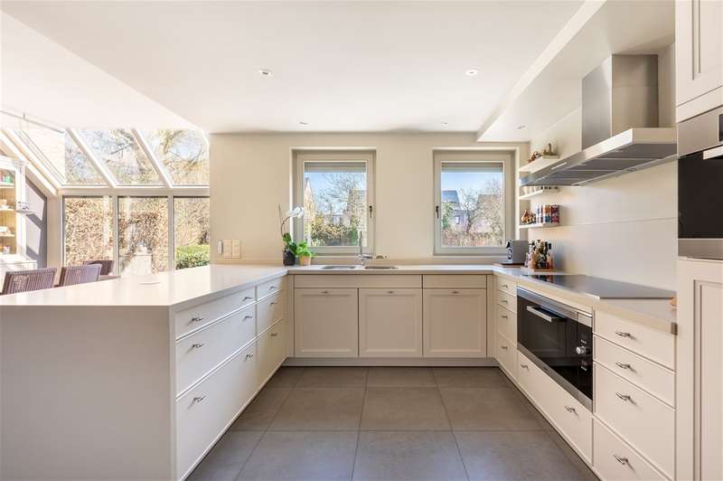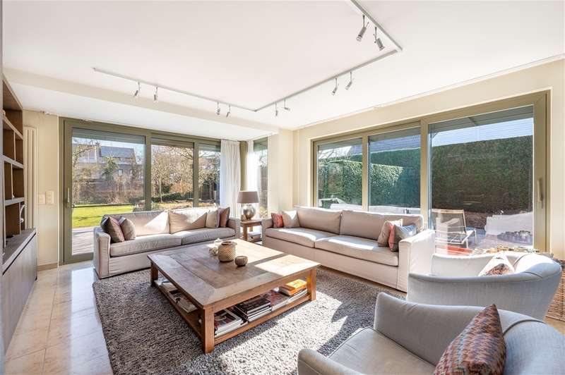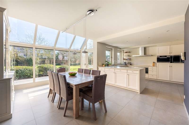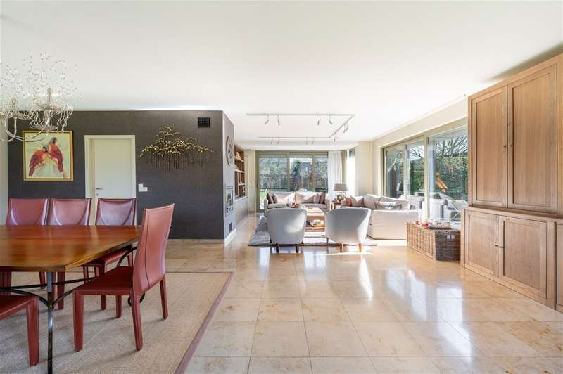 WILRIJK : Luxurious villa on 1,754m² with 6 bedrooms, 3 bathrooms, practice and double garage. EPC label B. ; In beautiful, and above all serene surroundings, with easy access, one finds this beautiful villa (°1995) on a large and wide plot with landscaped gardens. With its separate office on the ground floor, this is an ideal home for a liberal profession or a live-work combination. Throughout the property, the finishes feature noble materials and with an EPC label B, this villa enjoys exceptional energy performance! ; DESCRIPTION: ; Ground floor: Entrance hall with cloakroom and guest toilet with hand-washer. Spacious practice office with fitted cupboards and washbasin. Ideal as a home office or practice. Large bright dining and living room on marble floor and with open fireplace cassette. Very pleasant living kitchen with Miele appliances, granite worktop and spacious dining area. The kitchen overlooks the garden and terrace. Adjoining practical laundry room and storage room. Superb sunny garden with water feature and several very pleasant landscaped (sun) terraces. Double garage with automatic gate; adjoining separate storage room and technical room. Double driveway to the landscaped front garden. ; 1st Floor: Beautiful master bedroom (approx 33m²) with fitted dressing room. Luxurious bathroom with designer bath, walk-in shower and double washbasin and toilet. Bedroom 2 (approx 12m²) opening onto terrace. Bedroom 3 (approx 16m²) Bedroom 4 (approx 17m²) Bedroom 5 (approx 15m²) with annex shower room and washbasin. Bathroom 3 with designer bath, toilet and double washbasin. Night hall with separate toilet and linen cupboards. ; 2° Floor: Bedroom 6 (approx 35m²) with fitted wardrobes. Attic possibly to be converted into additional bedroom or bathroom. ; ; Basement : Several fully tiled storage rooms. ; PARTICULARS: ; * Dead-end street and green calm environment * Easy accessibility * Beautiful large garden * Energy efficient EPC label B * Insulated roof * New Bosch condensing boiler and water heater * Alarm and electric shutters * Ideal office on the ground floor * Double garage and driveway * Fitted cupboards everywhere * Beautiful landscaped and sunny garden * Water softener ;
