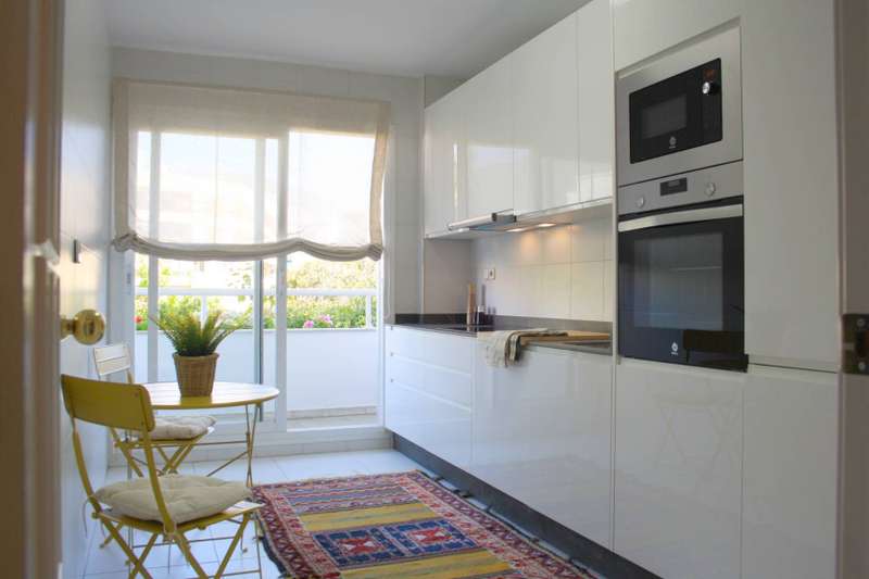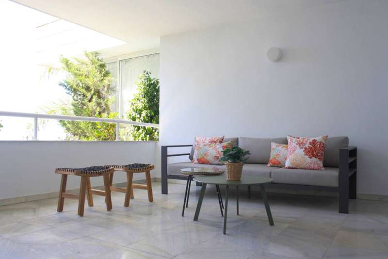This bright two-bedroom apartment is available to rent in one of the most sought-after areas of central Marbella. Just a few steps from the sea, the historic center, and all essential amenities. The property is located in a gated community with a communal pool and gardens. It is situated on a middle floor, facing south, which guarantees natural light throughout the day. The living-dining room is spacious, cozy, and has direct access to a large private terrace with magnificent sea views, ideal for relaxing outdoors. The separate, fully equipped kitchen includes a laundry room. It has two double bedrooms with built-in wardrobes. The master bedroom has an en-suite bathroom, and there is a second full bathroom for guests or the second bedroom. The apartment includes a parking space in the same building, a great added value in this central area. The location is excellent: next to the seafront promenade, a few minutes' walk from the marina and the old town of Marbella. It is also sur