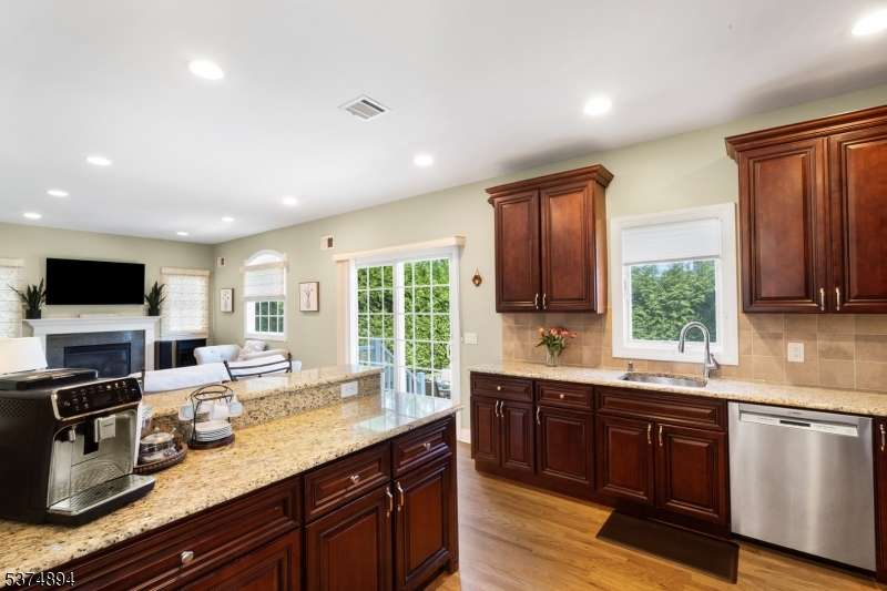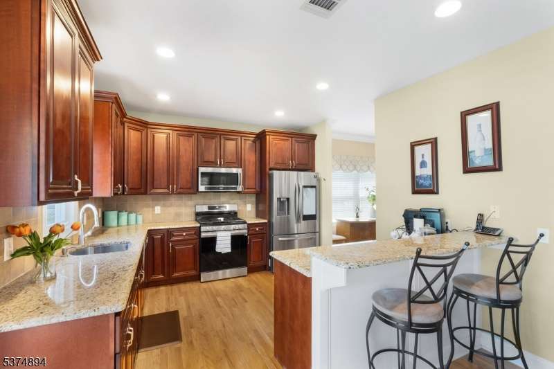 Constructed in 2008, this beautifully maintained 4-bedroom, 3.5-bath Colonial, offers a private in-law suite complete with a full bath and walk-in closet ideal for guests! The spacious family room opens seamlessly to the eat-in kitchen, which boasts granite countertops, a breakfast bar, stainless steel appliances, and sliders leading to the backyard. Upstairs, you'll find three generously sized bedrooms and two full baths, including a stunning primary suite with vaulted ceilings, a walk-in closet, an additional double closet, and a spa-like bathroom with jetted tub and stand-up shower. Hardwood floors run throughout the home, complemented by 2-zone heating and cooling, all newer appliances, and a 5-year-old hot water heater. The finished basement adds bonus living space along with laundry, utilities, and excellent storage. No history of water issues. Enjoy outdoor living with a welcoming front porch with stone facade, fenced-in yard, heated above-ground pool, paver patio, and a 1-car garage. LOW TAXES! Conveniently located close to parks, shopping, and transportation this home truly has it all!