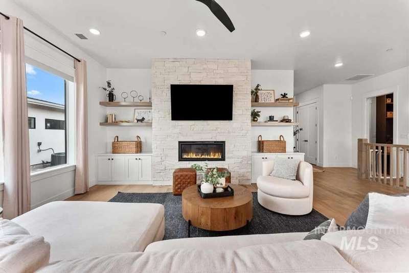 Welcome to this stunning East Boise estate with sweeping valley-wide views! This home blends elegance, comfort, and a resort-style backyard oasis. The exceptionally updated grounds feature an extended patio, new fencing, a built-in firepit, a recessed hot tub deck, and professional landscaping with new hardscaping throughout. Inside, the great room impresses with a dramatic floor-to-ceiling stacked-stone fireplace and custom built-ins. The chef’s kitchen includes WOLF and Sub-Zero appliances, floor-to-ceiling cabinetry, and a sink overlooking the valley. The dining area offers walls of windows framing breathtaking views. The main-level primary suite features a private balcony, dual vanities, an oversized walk-in shower, and a spacious walk-in closet. Downstairs, a large bonus room includes an added wet bar, built-in wine cooler, and oversized guest suite. Wide-plank hardwood flooring flows throughout the home. Additional highlights include updated designer lighting, a built-in alarm system, an EV charger, and epoxy-finished garage. Close to trails, the iconic Boise Greenbelt, Warm Springs Golf Course, and minutes from downtown dining and shopping!