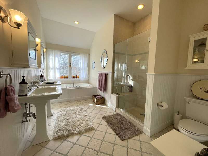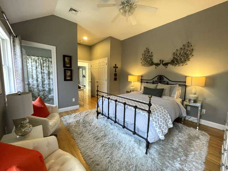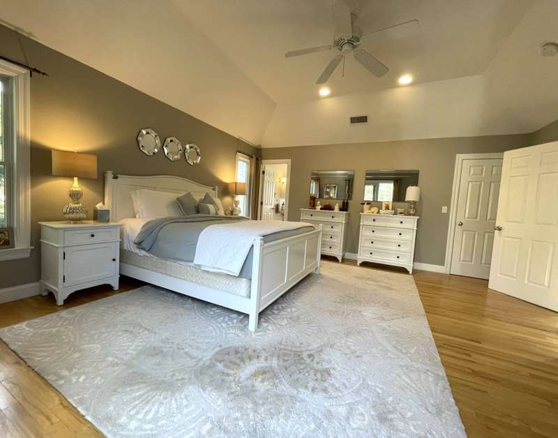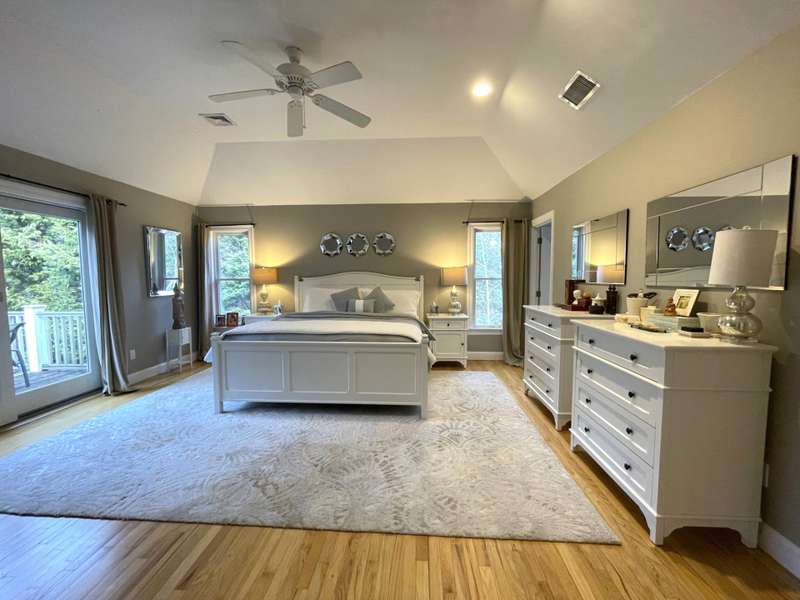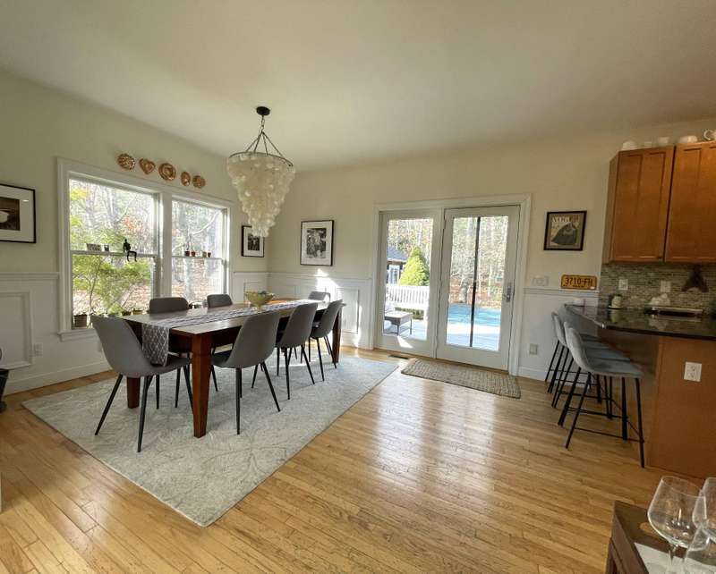 Rental Registration #: 24-1,142 - Spacious, nicely decorated, and well-kept four bedroom, four and one-half bath home with beautifully done pool house. One en-suite primary bedroom with king size bed and bathtub on first floor; second floor en-suite primary bedroom with king size bed and bathtub leading to its own deck/sitting area; another en-suite guest bedroom with queen size bed; second guest bedroom with two twin beds. Double height ceiling living room with fireplace, chef's kitchen, dining area, screened in porch/sunroom, pool and pool-house. Amenities include heated pool, detached two-car garage, and air conditioning. It comes equipped with Ping Pong table, Foosball, and Air hockey. Close proximity to beaches, bay and ocean..Listing ID: 743019