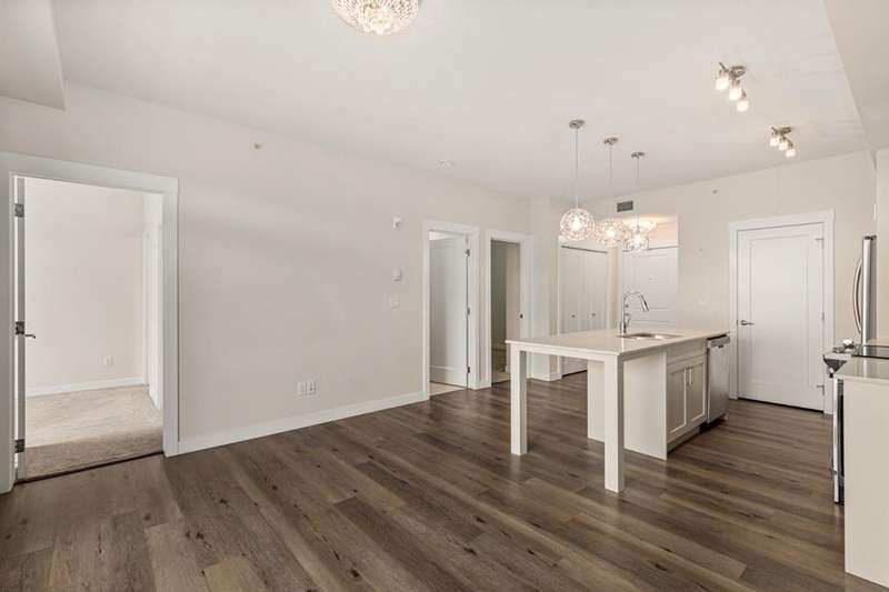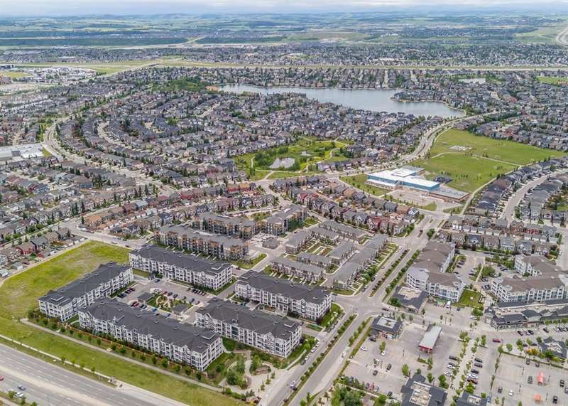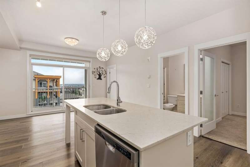 Experience luxury living in a fully upgraded almost 700 square foot top-floor unit in the prestigious lake community of Auburn Bay. Step into this bright, beautifully designed 2 bed 2 bath condo that embodies high quality and functional living with thoughtful design, soaring ceilings, and an open-concept layout. Boasting a modern chef’s kitchen with sleek quartz countertops, custom tile backsplash, stainless steel appliances including a chimney style hood fan, and a spacious island that doubles as your dining table, prep station, or home office hub. Step outside and onto the convenient covered West-facing balcony, with peaceful mountain views and a BBQ gas hookup—perfect for sipping coffee or evening relaxation.The primary suite includes double room closet and a spa-inspired ensuite with vanities, and glass shower. For maximum privacy, the other bedroom can be found on the opposite end of the unit, with an additional ensuite and roomy closet, perfect for guests or roommates. Additional highlights include luxury vinyl plank flooring, A/C, full-size washer/dryer in a dedicated laundry room with pantry, and a titled underground parking stall with attached storage locker. This pet-friendly complex is steps from Auburn Bay Lake, walking trails, schools, CO-OP, restaurants, public transit, and South Health Campus. It is also located mere minutes from the Seton YMCA and quick access to both Deerfoot and Stoney Trail for an easy commute. Whether you're buying your first home or investing, this pristine, well-located condo offers incredible value in a thriving community.