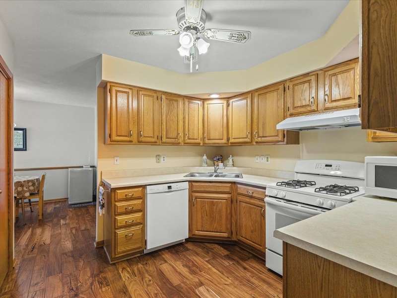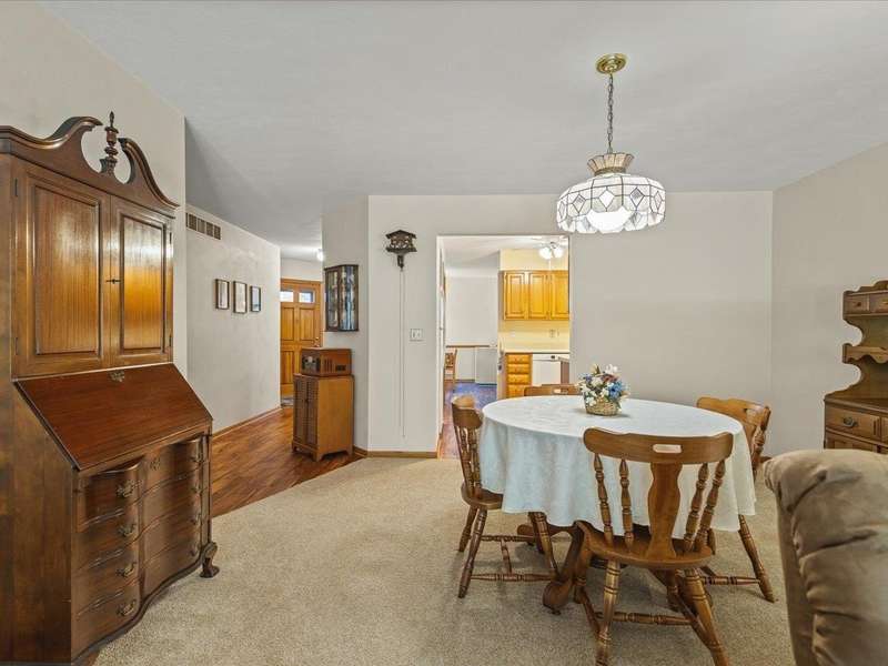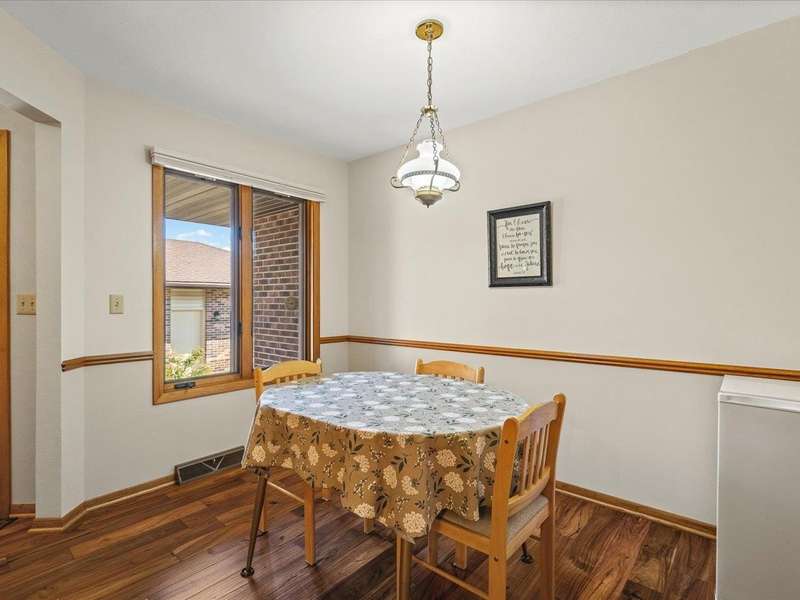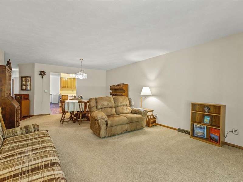 Experience the ease of condo living in this charming Zentz built, all brick 2 bedroom, 2 full bath residence. The spacious open concept layout features bright living and dining areas that create a welcoming atmosphere for entertaining or relaxing. The kitchen with an eating area is basic yet functional, equipped with essential appliances including a refrigerator, stove, oven, and dishwasher, offering everything you need for everyday cooking. Both bedrooms are generously sized, with the primary suite featuring double closets and a private ensuite bath. The second full bathroom is for guests. This property also features a convenient first floor laundry room, making household chores easier and more accessible. Another feature is a spacious 2 car garage with durable epoxy floors. Plus, the lower level awaits your personal touch - ready to be finished and transformed into the space of your dreams. Outside you will find your own private composite deck—perfect for enjoying morning coffee or just relaxing. Interior is fresh and clean and many updates throughout that add to the appeal. With excellent dining, shopping, and fitness center nearby.