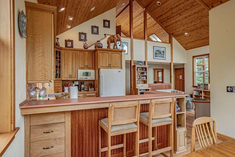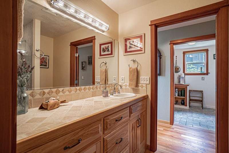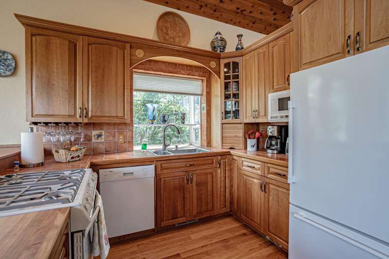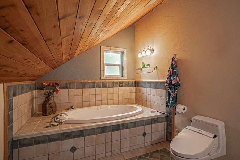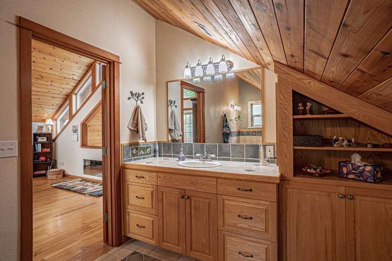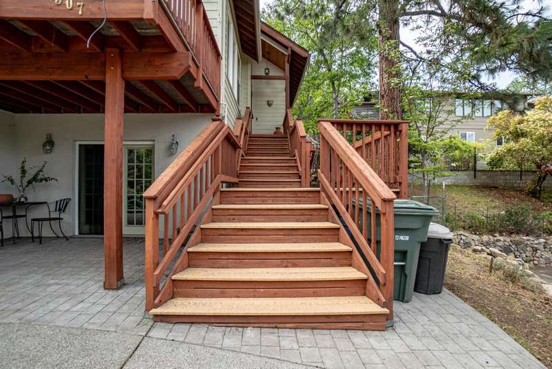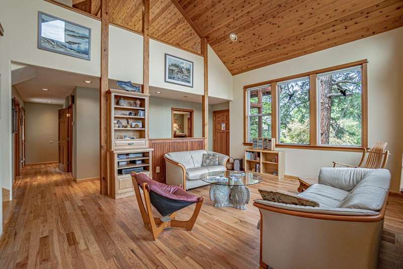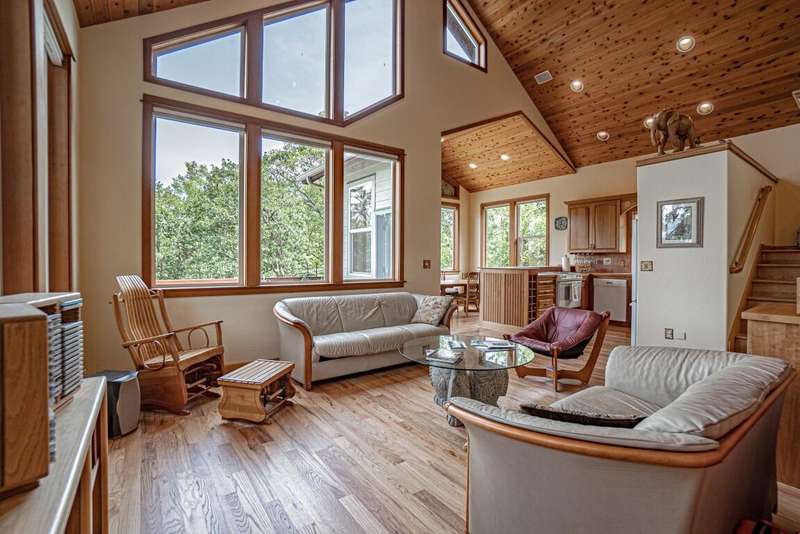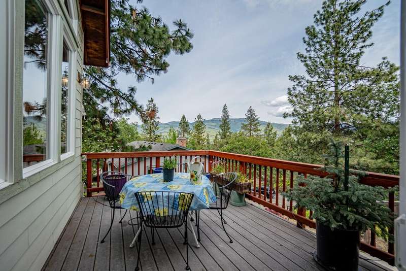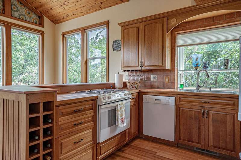 Gorgeous Custom Home and Guest Cottage, Just Steps to Downtown Ashland! This lovingly designed ''Tree-House'' features vaulted living spaces, quality wood finishes, beautiful architectural detailing, extensive natural light and 12-panel solar array. You'll love the T&G ceilings, oak flooring, chef's kitchen with solid surface/tile counters, custom cabinetry, dual-fuel range, sunny garden window, plus the main-level office/bedroom with guest bath, tile shower and counters. The loft-style primary suite offers skylights, views, wood floors, tile bath and jetted tub, while the ground level features a sitting area, guest bedroom, sweet bath with tile shower, unique brew room with industrial sink and good storage. Outside are lovely private decks, soaring trees and beautiful mature plantings. The detached cottage features aggregate flooring, cozy built-ins, brick shower, compact kitchen with gas range, loft sleeping area and energy-efficient mini-split. A True Oasis!