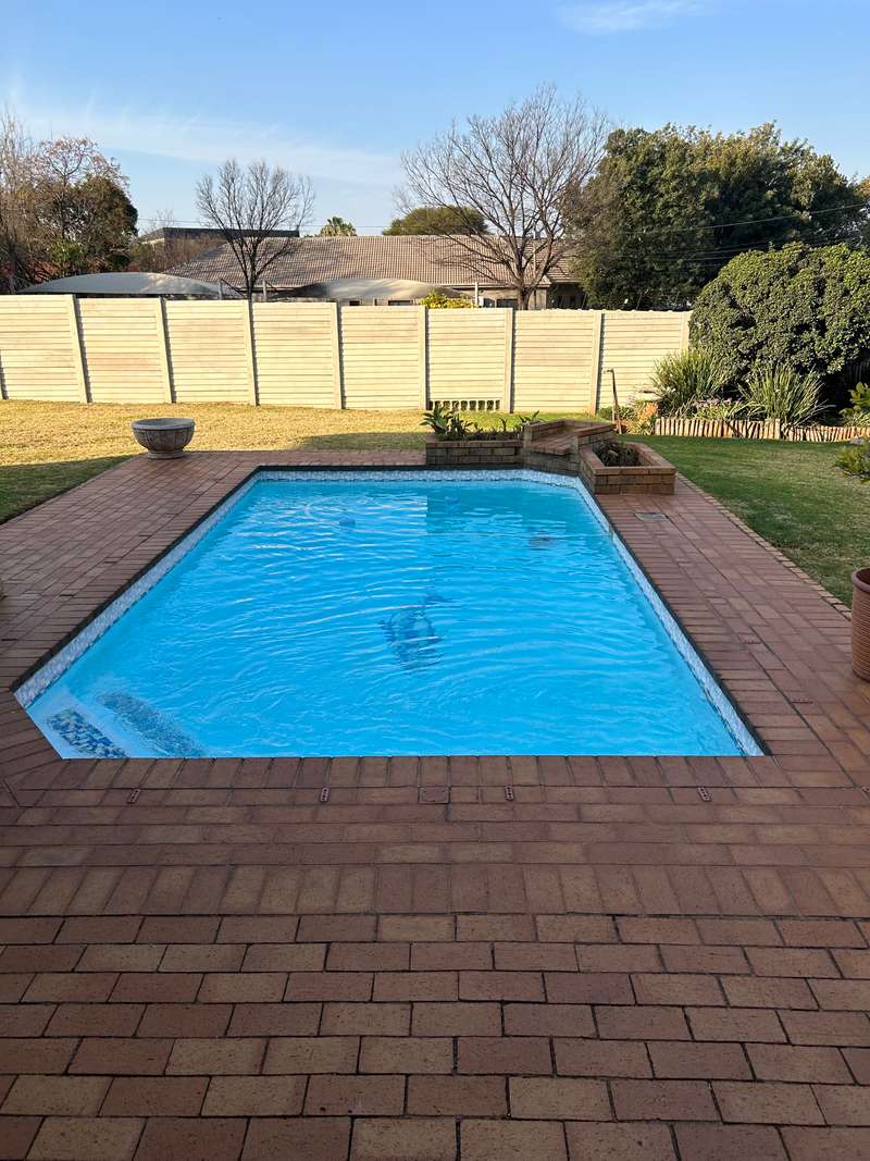 Enjoy this beautiful home that boast a beautiful garden. Two patios to enjoy the view of your garden in winter days and the lazy summer evenings. Capturing north facing bedrooms to keep warm in winters. House Features: 4 Bedrooms 2 Full bathrooms A study Great sized kitchen Open plan dining and living arears TV room External Features: Maid's quaters Sparkling pool Build-in Braai area Double garage, car port and lots of parking space
