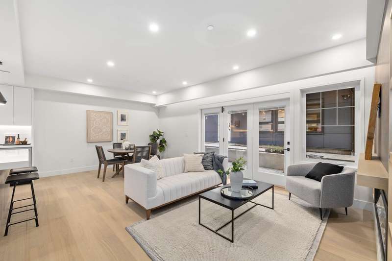 Welcome to 5West built by Asanti homes, a collection of 1, 3 , 3 + Den and 4 bedroom homes offering functionality, and style in every detail! This 3-bed, 2.5 bathroom residence on 1 thoughtfully designed level provides comfortable living for any Buyer. The floorplan boasts a spacious living room leading out to the large covered patio, dining area perfect for large family gatherings, gourmet kitchen, custom BCG cabinetry, integrated appliances and a large kitchen island. All 3 bedrooms are a great size for large furniture. Enjoy the spacious patio, storage locker and parking stall with EV capability and an unbeatable walkability close to all of Kerrisdale's amenities.