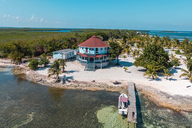 PRICE REDUCED! Discover the true definition of escape and tranquility. One of the most anticipated opportunities in Belize, encompassing the entire Southern end of Calabash Caye, located within the Turneffe Atoll Marine Reserve. With almost 2,000 feet of beach frontage on 14 mostly cleared acres, it is truly a tropical island paradise with incomparable views and soothing tranquility of the crashing waves offering you unmatched relaxation for both the mind and body. Sun, Sand and Shade await you on this Island Property which has been beautifully landscaped with hundreds of coconut palms, flowering Ziricote Trees, massive Sea Grapes, an Almond Tree and Australian Pine Trees, and is lined by almost 2,000 feet of white sandy beaches, and clearings up to 700 feet deep. Property includes a beautiful and luxurious, 4,250 sq. ft. two-story, five bedroom, 4 full-baths, 2 half-baths, Deltec designed Home with proven hurricane resistance, sitting just 65 feet from the waters edge. If that is not enough room, there is an additional 2,000+ sq. ft. of decking and each bedroom has its own private veranda overlooking the Caribbean Sea. With eight screened sliding glass doors on the first floor and an additional 32 windows throughout, your new home offers an inviting view of the beach, ocean and beyond from anywhere within. It is mostly equipped and is designed to entertain family and friends, with a Chef designed gourmet commercial grade kitchen, walk-in pantry, 27 foot eating bar, theater room, laundry room, and both an upstairs and downstairs living room. Extensive use of marble and exotic hard woods throughout. Even with a big crowd, you can easily find a place to get away for some alone time if you need to. Due to its circular design, from anywhere in the house, you can enjoy expansive panoramic ocean views which are absolutely stunning. Support structures include a well house protecting the fresh water well, a 25’x40’ building for the Generator and Desal System, and a 25’x35’ building housing the two full-time Caretakers and offering ample storage, and an 8’x20’ Shipping Container for additional storage, Calabash Caye and the neighboring islands are havens for birds and a rich abundance of marine life with breaks in the reef and access to deep water immediately east and south of the property. The vastness and variety of marine life and coral formations in this area are truly unmatched making it one of the most popular destinations in the Caribbean. nnThe property is ideal for a Private Retreat, or commercially as an Island Resort specializing in saltwater fly fishing, diving and other related water activities. With almost 2,000 feet of beach front and great depth, the parcel can be easily subdivided to accommodate multiple Private Island Residences with one of a kind views and access to this island and marine treasure. nnProperty is near Other well-known resorts in the Turneffe Atoll including Turneffe Island Resort, Turneffe Flats and Blackbird Caye Resort. The Turneffe Islands have been recognized as one of the Caribbean’s top destinations for saltwater fishing and diving.nnRecent improvements include: new sliding glass doors, all new windows, doors, roof work, small solar units, complete repaint of interior and exterior and all support structures. Call us for an Appointment - you will not be disappointed!