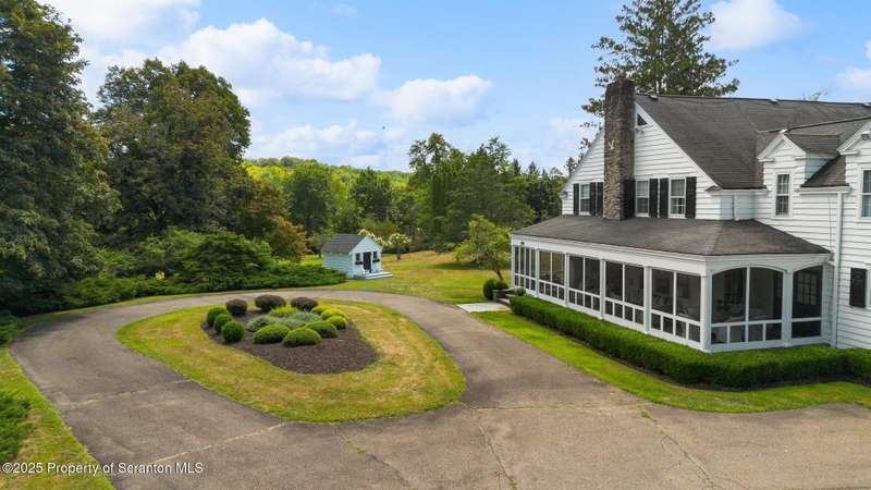Historic Estate with Guest House & Exceptional Amenities! Step into timeless elegance with this historic estate offering 5-6 bedrooms and exquisite natural woodwork throughout the main house. Enjoy evenings by the wood-burning fireplace or relax on the screened-in porch overlooking the property's private setting. The home features luxurious baths, imported from Italy and a spacious slate patio with built-in grills, perfect for entertaining. A large addition above the four-car garage includes a game room, gym, and a generous office with balcony and sweeping views. The guest house provides two modern apartments each with separate decks, a covered front porch, and an additional two-car garage. Equestrian and recreational amenities abound with a horse barn offering five stalls, an extra four-car garage, a basketball court and a storage building. This remarkable estate combines history, luxury, and versatility - offering a rare opportunity to own a private retreat with unmatched character and space.