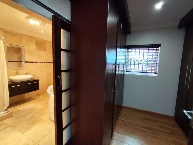 Discover the perfect blend of style, comfort, and security in this beautifully presented three-bedroom home, nestled in the sought-after Ascot Village. Step into a spacious open-plan living area where the modern, fully fitted kitchen flows seamlessly into the dining and lounge spaces—ideal for both everyday family life and effortless entertaining. A cozy TV room just off the main area provides the perfect retreat for relaxed evenings or movie nights. The luxurious master suite is your personal escape, featuring a walk-in wardrobe and a serene en-suite bathroom with a deep soaker tub—perfect for unwinding after a long day. Two additional bedrooms, each with built-in storage, are served by a generously sized family bathroom, offering practicality and comfort for the whole family. From the TV room, sliding doors lead out to a covered patio—ready to be transformed into your own outdoor oasis for weekend braais or quiet mornings with coffee. Car enthusiasts and busy families alike will love the abundance of parking: a double driveway, plus a secure garage with space for up to four vehicles. The garage also features a versatile bonus room—ideal as a home office or hobby space. Peace of mind comes standard, with trellis-style security gates and burglar bars fitted throughout, along with automated doors and entrance gates for added convenience. This stylish, secure home offers everything your family needs in one of the area’s most desirable neighborhoods. A must-see for those looking to settle in comfort and peace—schedule your viewing today!