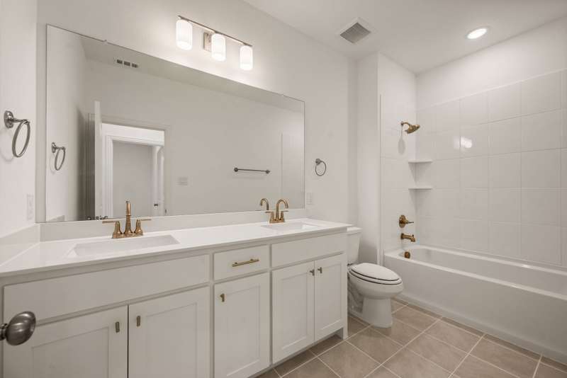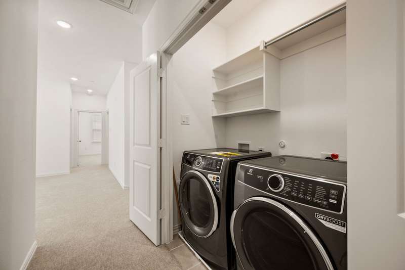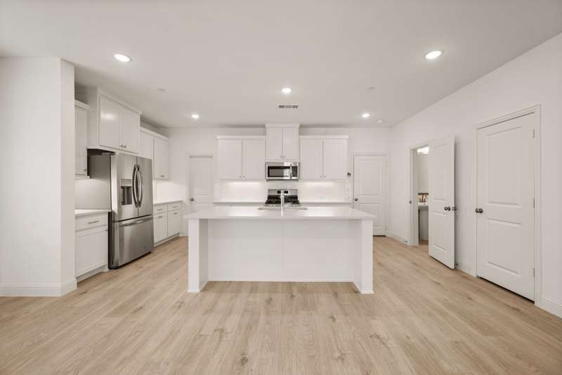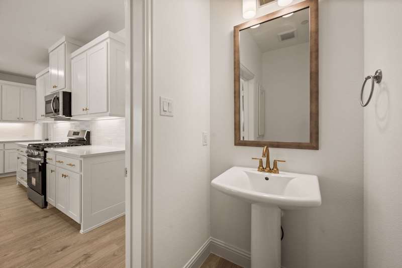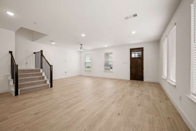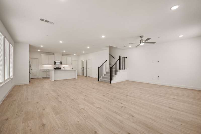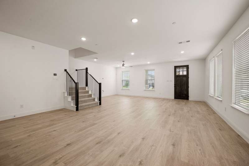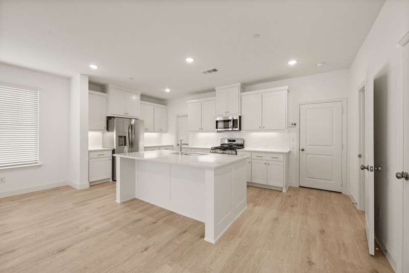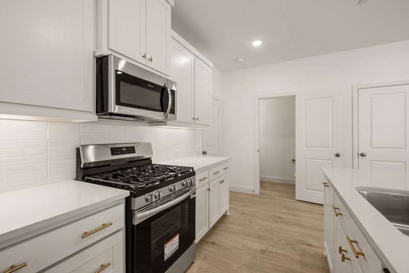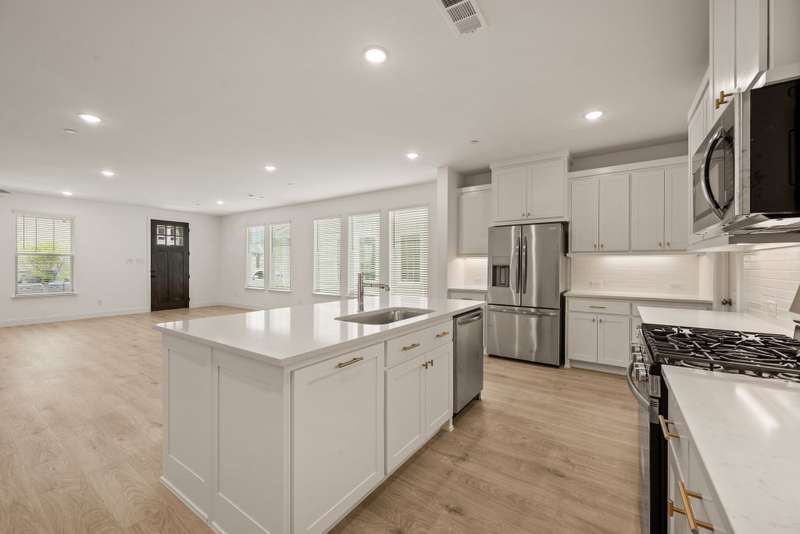 CB Jeni Tatum floorplan just completed and never occupied. Be the first to live in this beautiful end unit townhome with open floor plan, light engineered wood flooring throughout first floor, large dining area and gorgeous kitchen with gas range, microwave, dishwasher, disposal and refrigeration. White painted cabinets, gold hardware and quartz countertops give this home a contemporary feel. A Powder Bath is located off of the kitchen, Upstairs is a large primary suite with ensuite bath including separate vanities, shower, garden tub and huge walk in closet. The laundry is in a closet in the upstairs hall for convenience. An additional living area can be anything you want. Two additional bedrooms and a bath are at the opposite end from the primary. An oversized two car garage is attached at the rear and accessible via an alley. Schools are excellent and shopping is close. Don't miss this opportunity to live in never before occupied construction.