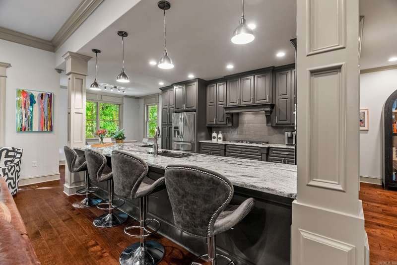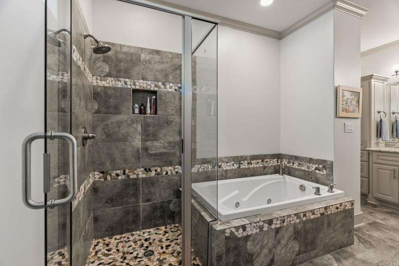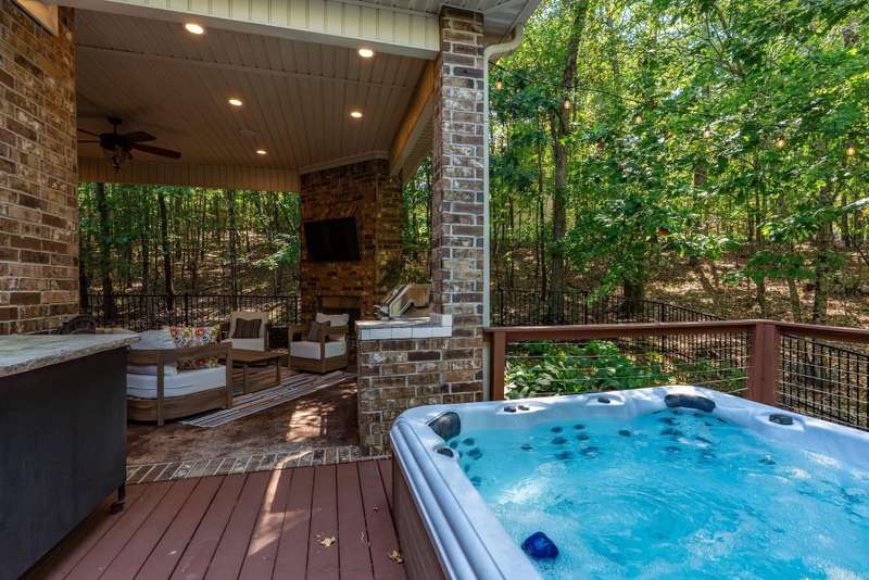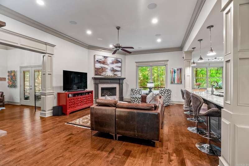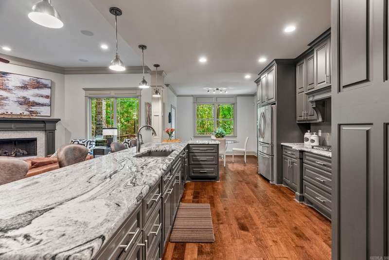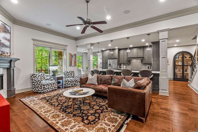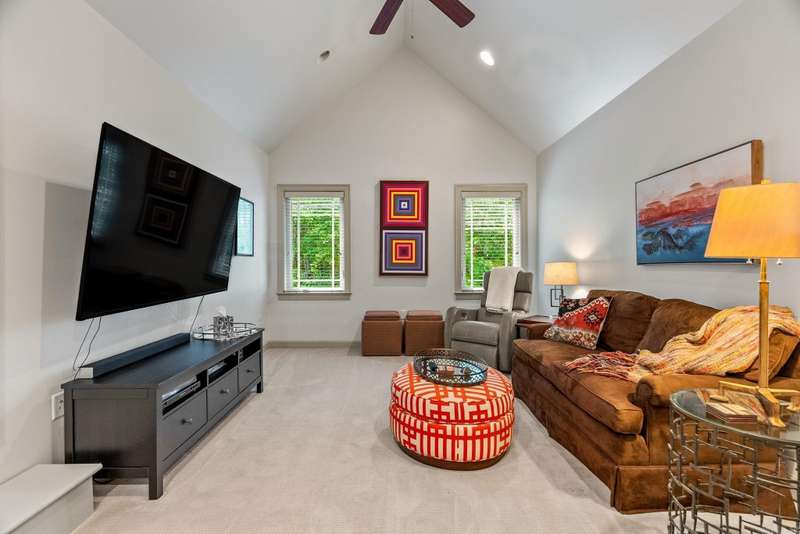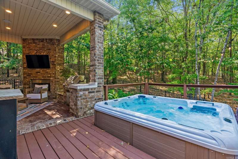 Nestled in the beautiful gated community of The Woods at Woodlands Edge, this home offers a serene setting surrounded by lush green space. Enjoy the beauty of the outdoors year-round from the covered patio with a fireplace or while relaxing in the hot tub on the deck. Open-concept main level is perfect for both everyday living and entertaining. The spectacular chef’s kitchen features bar seating, a breakfast nook, abundant storage and breakfast bar seating. Spacious living area with fireplace and adjacent formal dining room currently being used as second living area. Large laundry room with amazing storage sits just off the garage for added convenience. Wonderful main-level primary suite along with an additional bedroom and full bath. Upstairs you’ll find office space, nice guest bedroom, full bath, and fourth bedroom that can also serve as bonus room, playroom or home office with vaulted ceilings, closet and access to floored attic. Lots of designer finishes, natural light and upgraded touches. Come see!