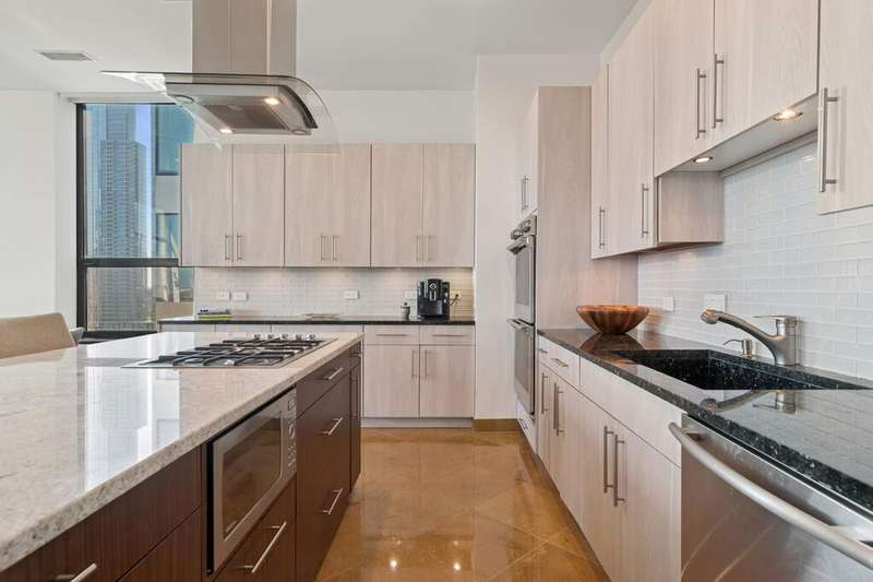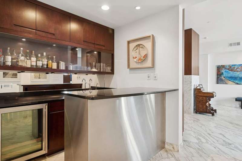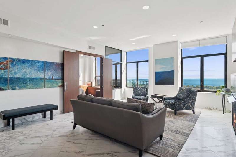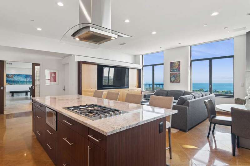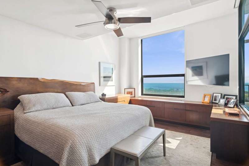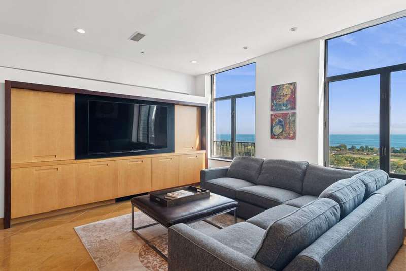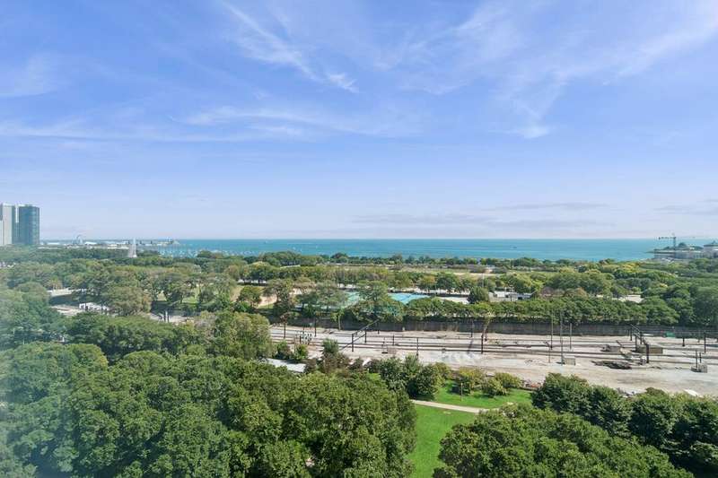 High above the city, where Lake Michigan shimmers at sunrise and the skyline glows at dusk, a home unlike any other awaits. What began as two separate residences was transformed by a visionary Interior Chicago designer into a one-of-a-kind retreat-crafted for living, celebrating, and savoring the beauty of every day. Step inside, and you're greeted by light pouring through oversized windows, framing unobstructed views of the lakefront from Navy Pier to Soldier Field. The home itself was designed as much for living as for artistry, with gallery-like walls and thoughtful lighting to showcase treasured collections. Every turn offers a new vignette, with the city and lake as a breathtaking backdrop. The heart of the home is a gourmet kitchen, bright and airy, with a generous island, double ovens, and stainless-steel appliances-perfectly paired with the adjoining family room. Here, the lake stretches endlessly before you, turning family meals and morning coffee into unforgettable rituals. For evenings of entertaining, the home tells a different story. A butler's pantry with dual wine fridge keeps every gathering seamless, while a custom wet bar with handcrafted cabinetry links the living and entertaining wings. This purposeful design-one side devoted to everyday life, the other to celebration-creates spaces as flexible as they are beautiful. Two primary suites invite moments of retreat, each with its own character. One offers custom shelving and a striking live-edge headboard, where guests can fall asleep beneath the glow of the city and awaken to the lake beyond. Bathrooms are works of art themselves, with sculptural mirrors, curated fixtures, and spa-inspired finishes. Throughout, **incredible storage-all professionally organized-**keeps the home as functional as it is elegant. Every room is alive with detail: pocket doors that disappear into the walls, custom cabinetry, automated shades that shift with the sun, and a professional audio system with speakers in every room, allowing music to carry through daily moments and special gatherings alike. Beyond your door, life continues with amenities designed for well-being: a fitness center, yoga room, and bike storage. Step outside and Grant Park is just across the street, a green oasis for both people and pups. Tandem garage parking completes the story, blending convenience with luxury. This is more than a home. It's a canvas in the sky, designed for artistry, comfort, and celebration-with Chicago itself as part of your story.