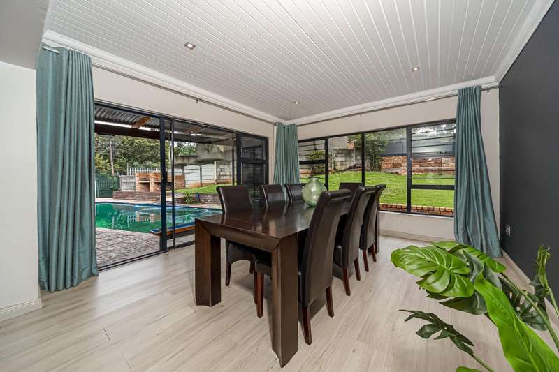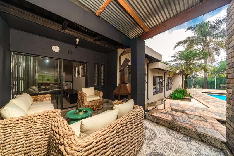 A Modern Masterpiece Behind the Boom ?Çô Where Design Meets Tranquility! Tucked away within a secure, access-controlled enclosure, this architectural gem blends sleek modern living with a relaxed lifestyle in an unrivaled setting. Boasting an expansive 340sqm of internal space on a 1,217sqm stand, this home is a sanctuary of style and sophistication. Step into a light-filled haven where open-plan living takes centre stage. The heart of the home is an ultra-modern kitchen with clean lines, high-gloss cabinetry, integrated appliances, and a central island designed for both function and flair. A scullery and laundry ensure clutter-free convenience, while the layout seamlessly flows into the dining area, TV lounge, and a chic formal living space ?Çö all flooded with natural light and wrapped in views of the lush outdoors. Four generously sized bedrooms and three contemporary bathrooms. Entertainment takes centre stage outdoors with a covered patio perfect for alfresco dining, a sparkling swimming pool that invites summer bliss, and a cozy boma fire pit for winter evenings under the stars. The manicured garden creates a tropical escape, offering both privacy and play. Additional highlights include staff accommodation, double garages, and a solar system with 6 solar panels and a 5kVA inverter ?Çö ensuring energy efficiency without compromise. This is not just a home; it?ÇÖs a lifestyle upgrade. With top-tier finishes, incredible flow, and all the space your family needs ?Çö opportunities like this are rare, and this one won?ÇÖt last long. Secure your slice of paradise today.
