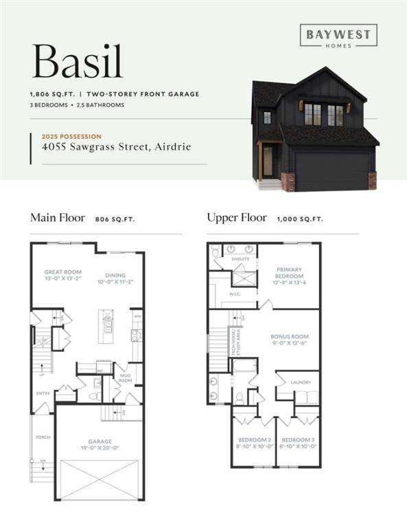 Meet THE BASIL—a stunning 1,872 SQ.FT. home offering 3 BEDROOMS and 2.5 BATHROOMS, situated on a spacious 3,444 SQ.FT. lot with a WEST-facing backyard. Estimated move-in is set for late 2025, giving you plenty of time to plan your next chapter. Built by BAYWEST HOMES, a trusted name since 1985, this home offers solid construction, innovative design, and comes with both a 10-YEAR ALBERTA NEW HOME WARRANTY and a one-year builder warranty for added peace of mind. Step inside to a welcoming entryway and a tucked-away powder room before being wowed by the showstopper kitchen! This chef’s dream features 42-inch cabinets extending to the ceiling with crown molding & under-cabinet lighting, a built-in microwave, gas range, upgraded appliances, and a chimney hood fan with tile work reaching to the ceiling. Quartz countertops, a Silgranite under-mount sink, and an upgraded faucet combine beauty with functionality. You’ll also love the 4-bin pullout system for waste, recycling, and compost—no more unsightly garbage cans! A spacious pantry sits across from the island with eat-up bar, and the mudroom provides both extra pantry space and a tucked-away area for your family’s coats and shoes. Designed with entertaining in mind, the open-concept great room and dining area feature oversized windows and a sliding glass door overlooking the backyard. Other notable upgrades include 9-foot basement ceilings, a side entrance, modern upgraded railings, and energy-efficient triple-pane windows to keep things cozy year-round. Now, let’s talk about the primary bedroom—a peaceful retreat featuring a generous walk-in closet and a luxurious en-suite with double sinks and a spacious shower. Upstairs also includes a bonus room, a laundry room with extra storage, two well-sized secondary bedrooms, and a large main bathroom upgraded with dual sinks—no more morning battles between siblings! Ready to make your move? THE BASIL in Sawgrass Park is waiting to welcome you home to a vibrant community featuring expansive green spaces, peaceful wetlands, scenic parks, and exciting plans for a new school and recreational amenities. Developed by Hopewell, it’s the perfect place to relax, play, and create lasting memories. Sawgrass Park is quickly shaping up to be absolutely stunning and getting in now means being one of the first to call this community home. Getting in first means incredible value and your pick of the best lots on the best streets! This home is one of those must see homes on a fantastic lot on a quiet street! Don't miss it! This home is currently under construction. Please contact the listing agent to arrange a showing. PLEASE NOTE THE PHOTOS ARE NOT OF THIS EXACT HOME. PHOTOS SHOW A HOME THAT IS THE SAME MODEL BUT IN ANOTHER COMMUNITY.