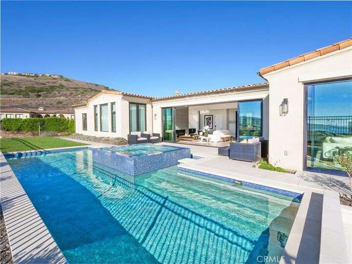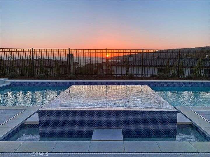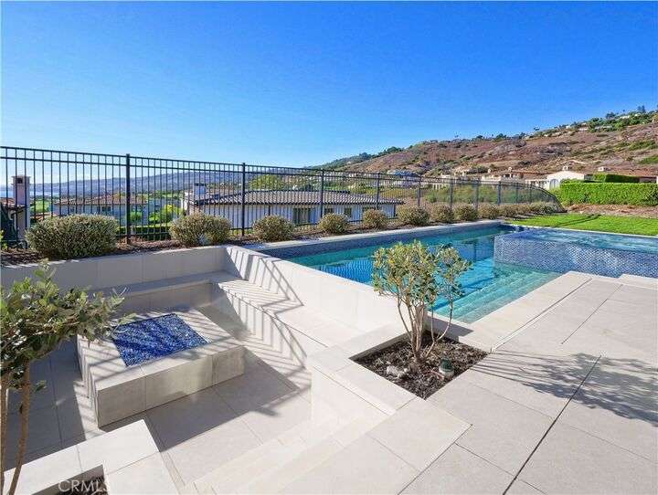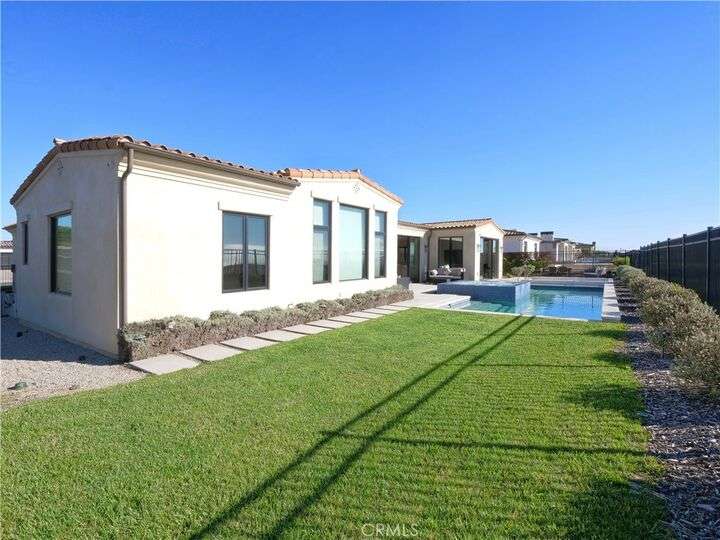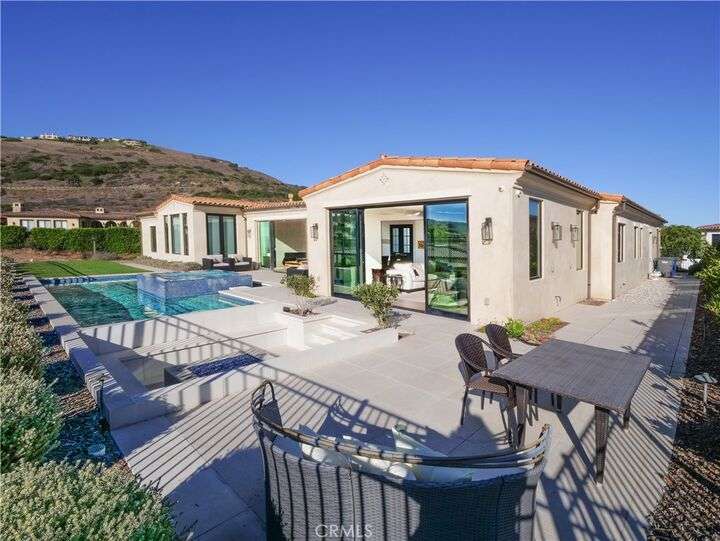 Completed in March 2021, this ONE-LEVEL Santa Barbara-inspired home offers stunning views of the ocean, coastline, and golf course. An immediate connection to the views and outdoors is felt as you enter this spacious, open-concept home through custom iron double doors, it is perfect for entertaining with a large group. The great room, kitchen, and family room flow seamlessly together, opening outdoors through custom paneled glass doors for unparalleled indoor-outdoor living. The backyard features a fantastic pool, an infinity spa, and a sunken fire-pit seating area. The great room showcases a modern linear fireplace with a custom surround. The master suite offers ocean views and directly accesses the spa, along with a large custom closet providing ample island storage. The bathroom includes a flush-entry shower, dual vanities, and a free-standing tub. Throughout the entire home, Weather Shield windows enhance comfort. All bedrooms feature custom cabinets and closets, along with a separate French door entry. This home features a thoughtfully designed floor plan built with quality and style. You will love the breathtaking sunset ocean views, the excellent climate in this section of the peninsula, top-rated schools, and the home’s high ceilings and open feel—all on one level. This is a forever home! Plus, it offers easy walking access to a network of ocean hiking trails in a great neighborhood with 24-hour security patrols. Too many features to list. Don’t miss this fantastic opportunity!