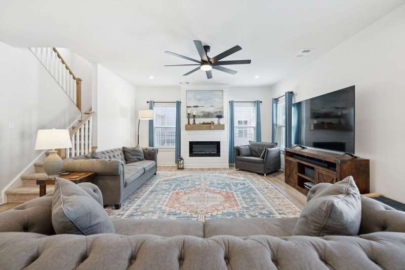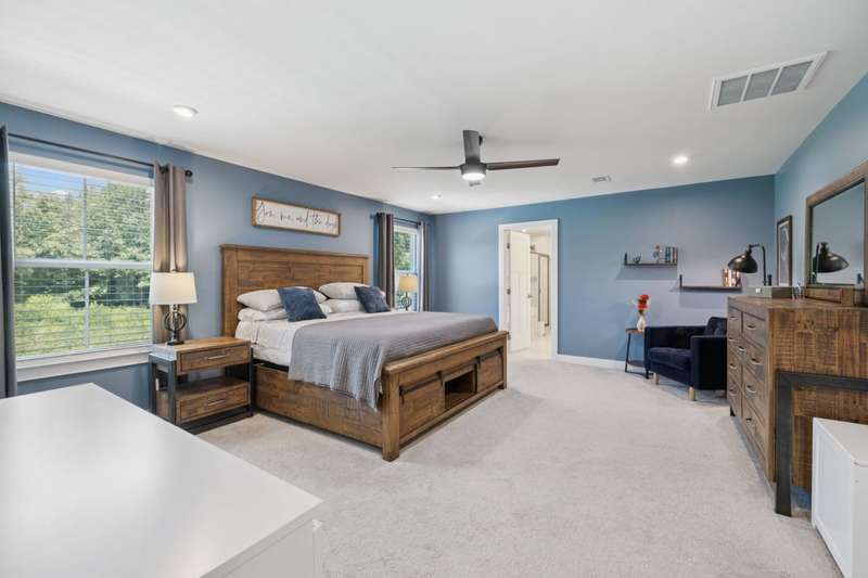 Enjoy the amazing amount of space and storage in this 4 bedroom, 3.5 bathroom, 3 car garage home. This beauty has all the upgrades; quartz counter tops in the kitchen with double ovens, large owner's suite with two walk-in closets and an ensuite with a soaking tub and separate upgraded shower, whole house water treatment system, additional office and flex living area, a spacious loft area on the second floor, covered back porch with remote screen, fenced back yard, third bay garage, extra wide concrete drive, stone accents at the front elevation and full front porch.