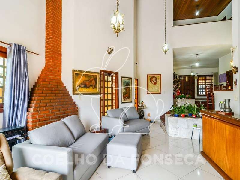 Confortável residência com amplas suítes, pé-direito alto, espaçoso living com lareira e mezanino. Área gourmet Excelente localização. Estuda permuta por imóvel menor.