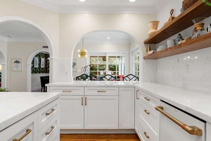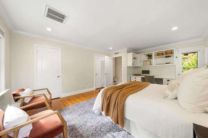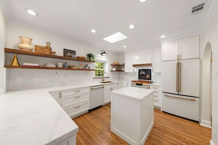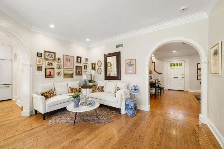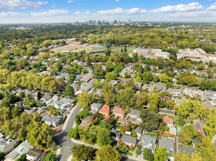 Stately custom home in the coveted College Tract of Land Park. This home effortlessly blends old-world charm with modern comforts. The design is both tasteful and playful, yet calming and refined. The brand-new kitchen showcases striking marble counters, Caf appliances, a spacious island, and exquisite walnut accents with open shelving. A formal dining room, highlighted by original leaded-glass windows, opens to a charming covered porch that's sure to make you swoon. The formal living room is warm and inviting, with a fireplace and an abundance of windows that bathe the space in natural light. The primary suite offers a walk-in closet, stone-clad bathroom, and its own cozy gas fireplace. A generously sized second bedroom provides convenient access to a full bath. Beautifully finished with graceful archways, hardwood floors, crown molding, dual-pane windows, a skylight, and two fireplaces, this home offers character at every turn. Additional highlights include a delightful reading nook, large backyard with a three-tier fountain, and practical updates like HVAC (Installed 2019), new water heater (2025), and fully remodeled kitchen (2025). All this, and just three blocks from William Land Park, Sac City College, Fairytale Town, and Funderland.