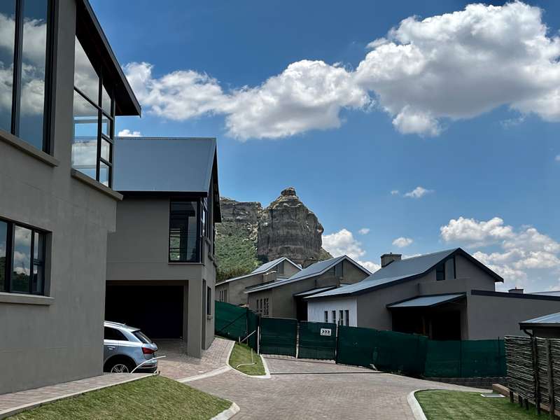 This property is located at the base of the renowned Titanic mountain in Clarens. It offers spacious 3-bedroom units with 3 bathrooms and boasts breathtaking views of the surrounding landscape. This phase of the development is brand new, ensuring modern amenities and design. Key features of the property include a double garage, a built-in braai (barbecue), and a fireplace, providing ample options for indoor and outdoor entertaining. Buyers have the flexibility to choose their preferred finishes to customize the interior according to their tastes. Additionally, one notable benefit of this property is that it comes with no transfer duty, potentially saving the buyer a significant amount in transaction costs. It's important to note that any imagery and renders provided are for marketing purposes only and may not necessarily represent the exact appearance of the property. Interested buyers should visit the property or consult with the seller for more specific details and accurate representations of the unit. An outside deck can be ordered at extra cost. Smaller units also available from R 2 490 000.