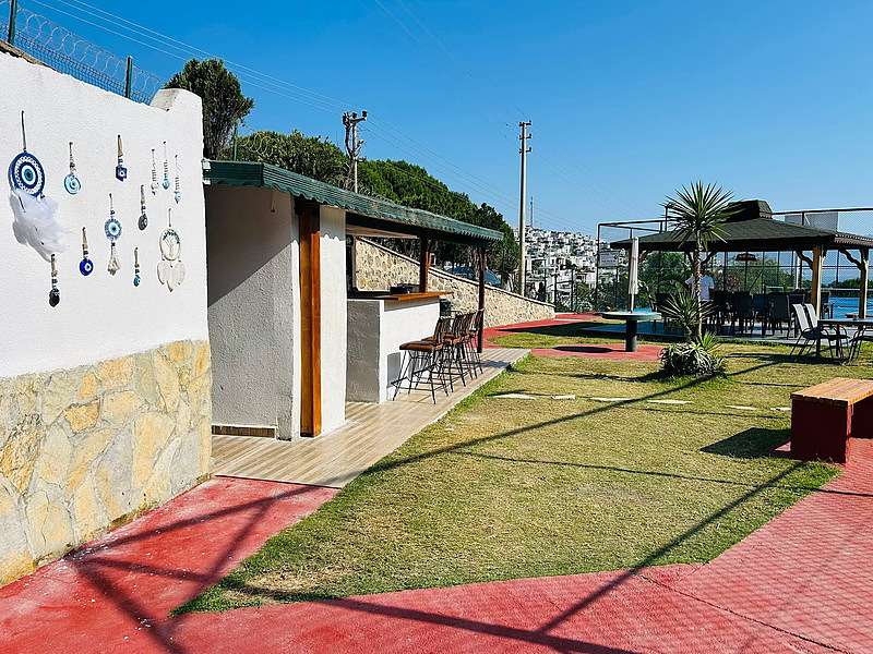 The villa for sale in Bodrum is situated 4.5 km from Turgutreis Marina, 5 km from the center of Turgutreis, 24 km from Bodrum State Hospital, 25 km from the center of Bodrum, and 58 km from Bodrum-Milas Airport.