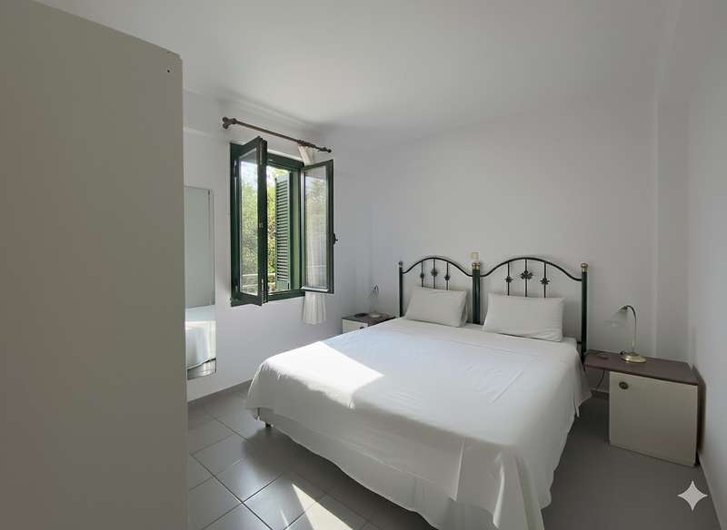 The villa with island and sea views features an open-plan living room, three bedrooms, two bathrooms, and a spacious garden. The complex also offers a communal swimming pool, as well as football, basketball, and tennis courts.