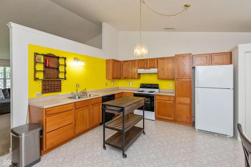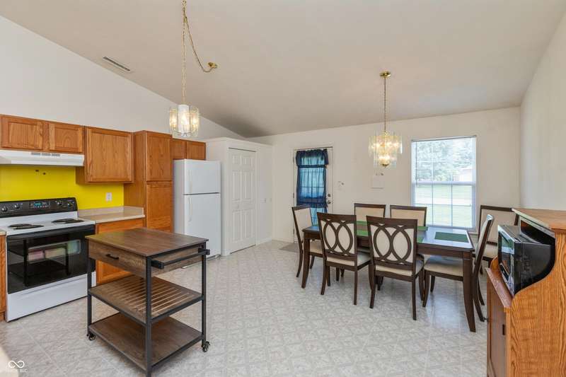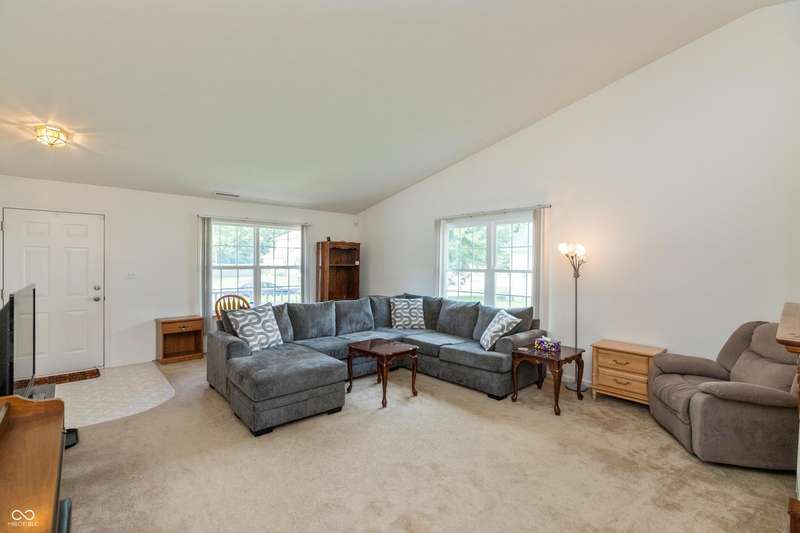 Well maintained tri-level on a quiet, dead end street. Great room with vaulted ceiling. Spacious kitchen/dining area includes refrigerator and range/oven! Three bedrooms and two full baths upstairs. Lower level has family room and huge laundry room plus 1/2 bath. Washer and dryer remain with the home. Low maintenance exterior siding! Great floor plan offering the ability to entertain on the main level and have a more casual area on the lower level for playroom, rec room or TV area! Neutral decorating throughout and very clean. Convenient location to Indianapolis International Airport, the interstate and downtown Indianapolis. Open patio and plenty of green space in back with no neighbors behind you!