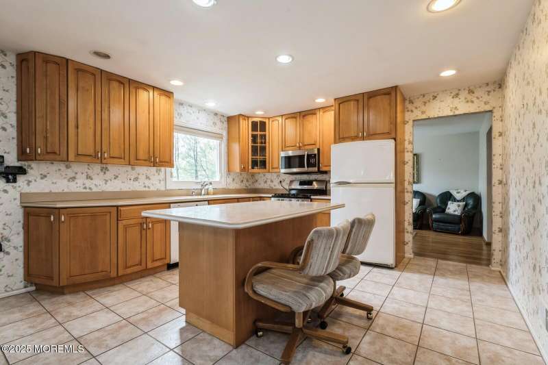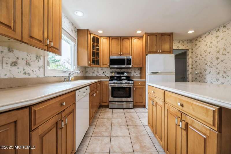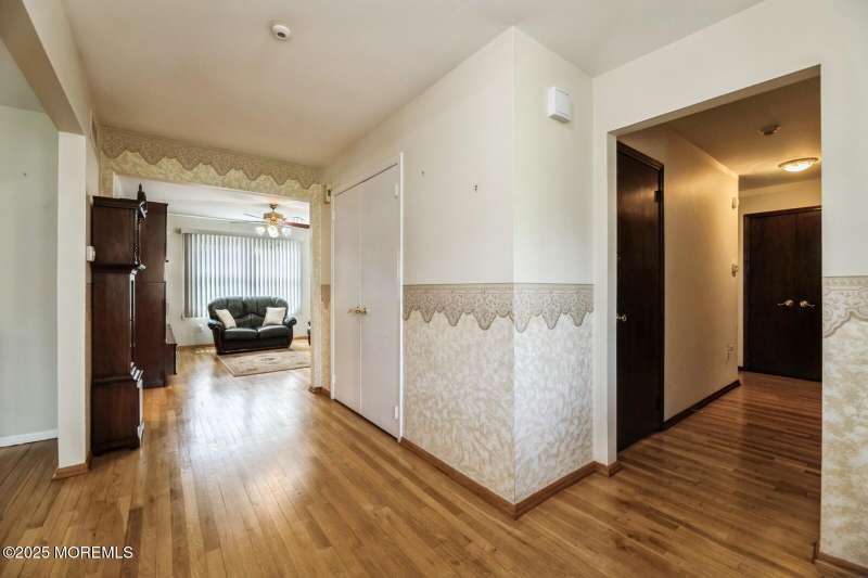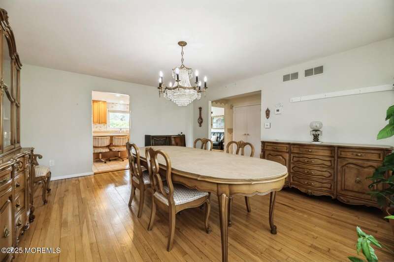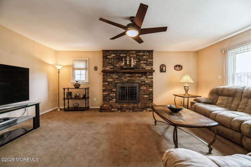Much sought after 3 bed 2.5 bath well maintained ranch, side entry garage,full basement,eat in kitchen with center island, tiled flooring,all appliances included,FR features gas fireplace raised hearth brick floor to ceiling,oversized DR with lots of natural light, HW floors in foyer, hall, all 3BR and LR, Primary BR has en-suite full bath, large closet and second closet,screened in 3 season porch off kitchen,level property,fencing in backyard,brick front,upgraded front entry and custom door.Approx .5 mile to bus, Rt 9 for those who commute. Close to shopping,restaurants, rec center. 1 YR Home Warranty included