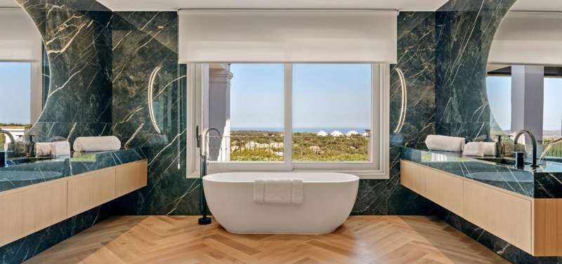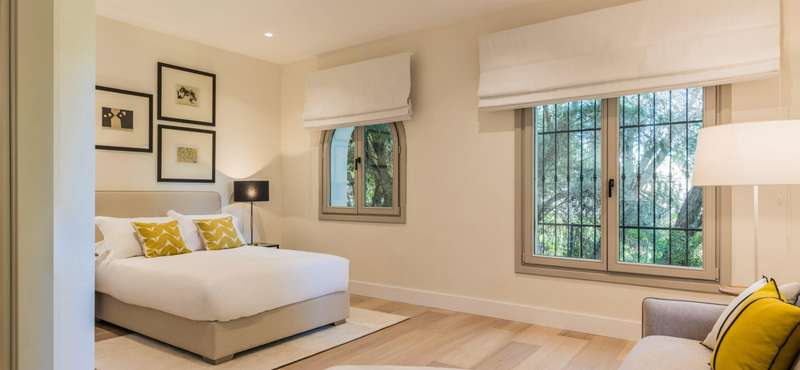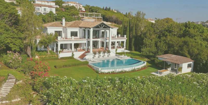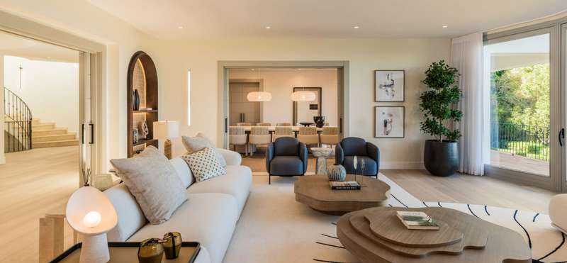 Located in one of the best roads in Sotogrande Alto, an exclusive residential area renowned for its elevated position, tranquillity and price location, just moments from the 5 star SO / Sotogrande resort and the prestigious Real Club de Valderrama Golf Course. This renovated villa has been transformed with modern finishes and sophisticated interior concept by Ambience Home Design. Showcasing a contemporary Mediterranean aesthetic, the property blends traditional Andalusian architecture with modern elegance, offering a home that is both traditional and stylish, creating a refined and practical living space. The interior features lofty wooden ceilings, adding warmth and character to the living spaces, while underfloor heating and air conditioning ensure year-round comfort. The villa also includes a fully equipped gym for those seeking an active lifestyle. Outside, a heated pool awaits, surrounded by lush gardens and offering breathtaking views of the sea, mountains and golf courses.