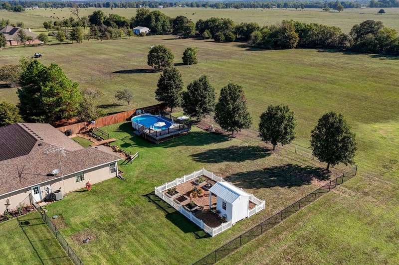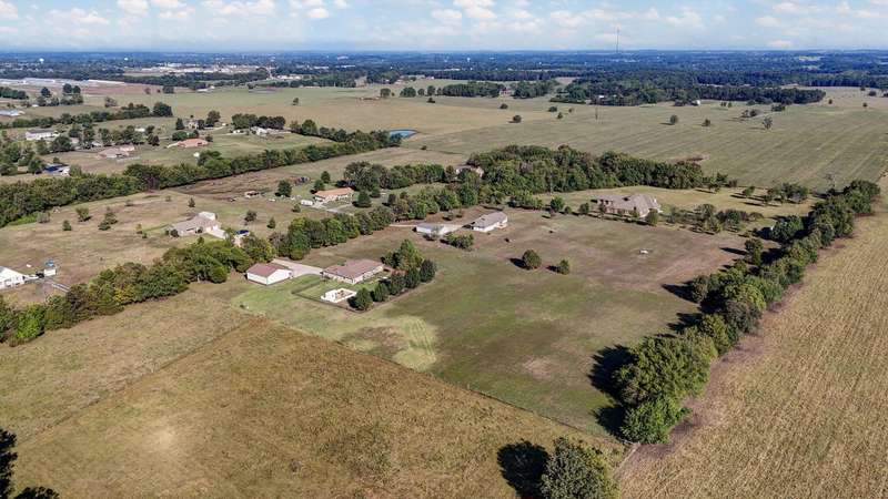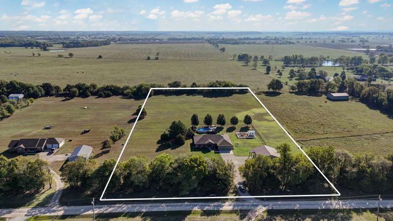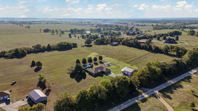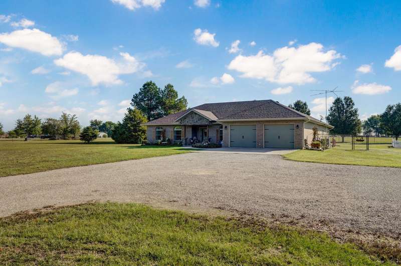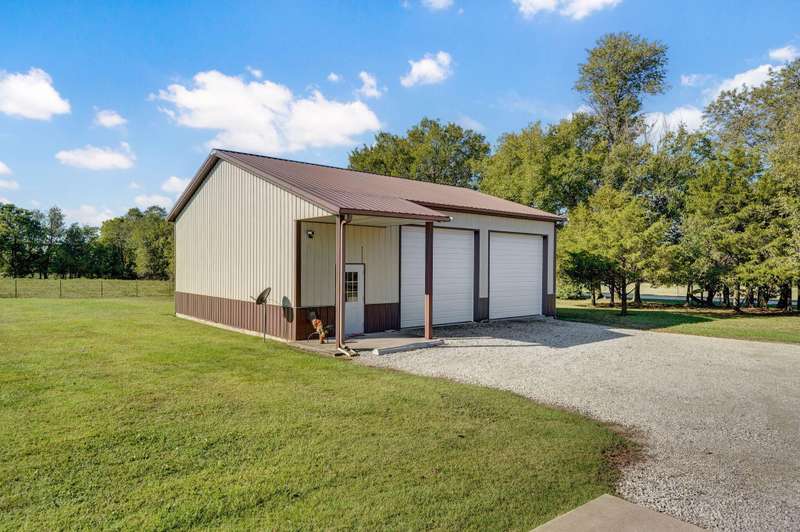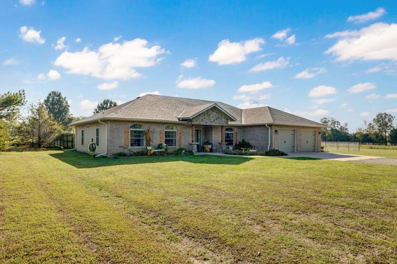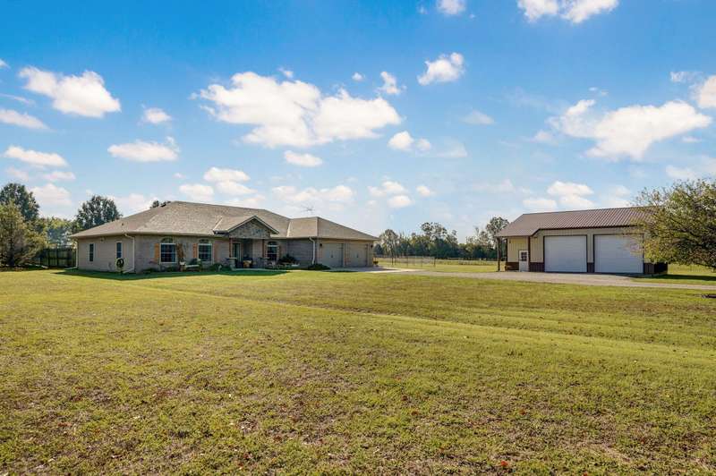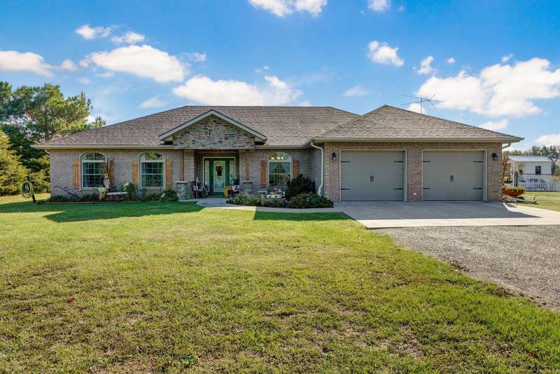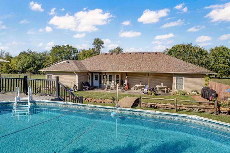 OPEN HOUSE 9-28-25 1:00 TO 3:00 THIS IS A MUST SEE !!!! Amazing property looks like something out of Better Homes and Gardens.... This fantastic three bedroom two bath Office/Game room 2000 ft. slab Home. Beautiful covered back patio, Large pool with composite decking, Backyard is fenced and Great for entertaining. Amazingly landscaped 4.99 acres. Waite till you see the potting shed Garden area with an Awesome fountain. So many updates have been made to the home granite countertops. Luxury vinyl flooring. Fresh paint throughout the Home. All new light fixtures and hardware. New garage door. R- 32 insulation in the attic makes for efficient utilities. Large pantry off the kitchen was once a half bath. You could always change back if desired. Fantastic covered back patio. Great for entertaining and barbecues. Yard is fenced. Fantastic 18 x 36 pool with a composite deck. Fruit trees, apple, peach and blackberry bushes. Let's not forget about the garden shed and the raised bed gardens and fountain area as well. Total relaxation. Bring your horses, cattle, chickens, great grass in the back. Let's not forget about the amazing shop 36 x 40 with concrete floors and electric. Also 110 and 220 Electric. fully insulated. Air compressor is negotiable. 12 foot doors 14 foot ceilings. Home has a Newer HVAC system. Well pump is only five years old. This home is just minutes from town. In a fantastic neighborhood/subdivision. Easy access to I 44. I could go on and on, but you just need to see.