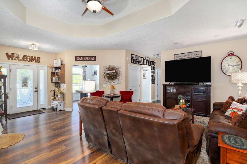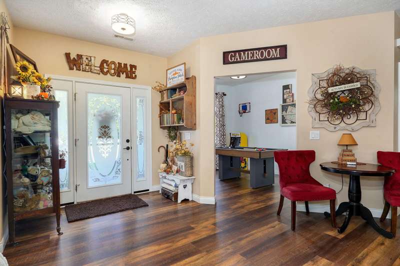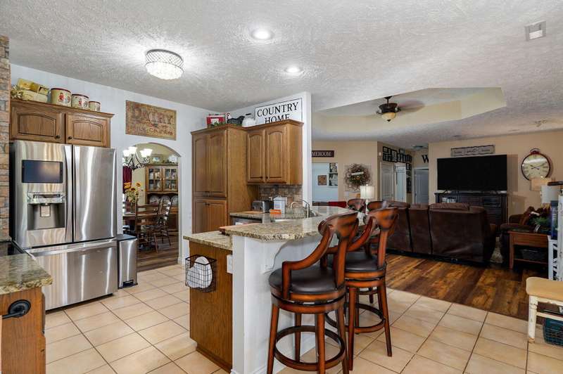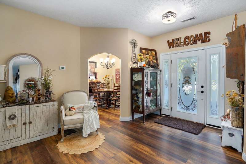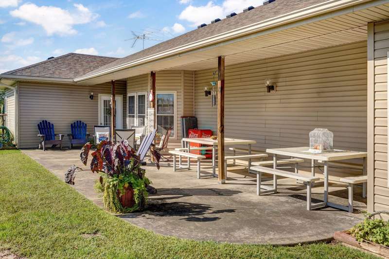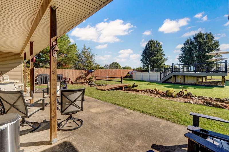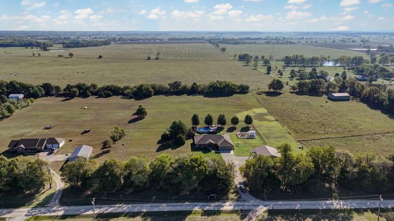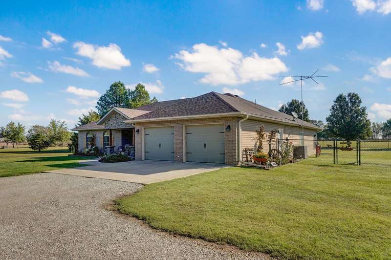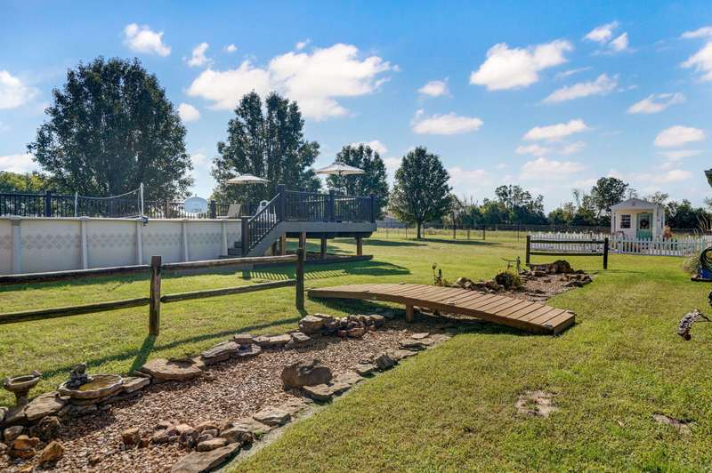 OPEN HOUSE 9-28-25 1:00 TO 3:00 THIS IS A MUST SEE !!!! Amazing property looks like something out of Better Homes and Gardens.... This fantastic three bedroom two bath Office/Game room 2000 ft. slab Home. Beautiful covered back patio, Large pool with composite decking, Backyard is fenced and Great for entertaining. Amazingly landscaped 4.99 acres. Waite till you see the potting shed Garden area with an Awesome fountain. So many updates have been made to the home granite countertops. Luxury vinyl flooring. Fresh paint throughout the Home. All new light fixtures and hardware. New garage door. R- 32 insulation in the attic makes for efficient utilities. Large pantry off the kitchen was once a half bath. You could always change back if desired. Fantastic covered back patio. Great for entertaining and barbecues. Yard is fenced. Fantastic 18 x 36 pool with a composite deck. Fruit trees, apple, peach and blackberry bushes. Let's not forget about the garden shed and the raised bed gardens and fountain area as well. Total relaxation. Bring your horses, cattle, chickens, great grass in the back. Let's not forget about the amazing shop 36 x 40 with concrete floors and electric. Also 110 and 220 Electric. fully insulated. Air compressor is negotiable. 12 foot doors 14 foot ceilings. Home has a Newer HVAC system. Well pump is only five years old. This home is just minutes from town. In a fantastic neighborhood/subdivision. Easy access to I 44. I could go on and on, but you just need to see.