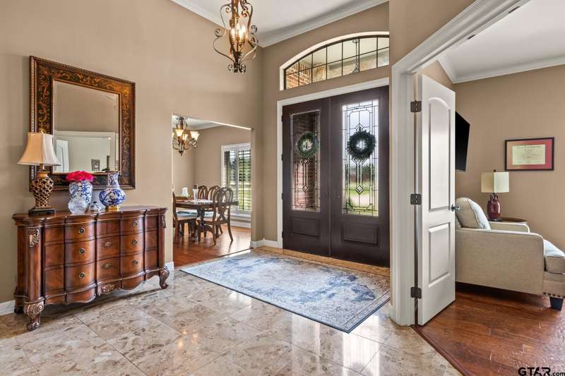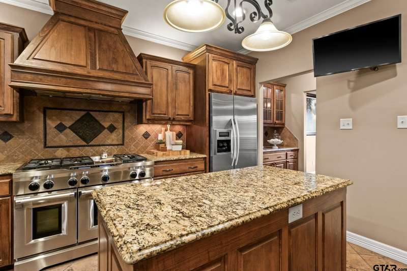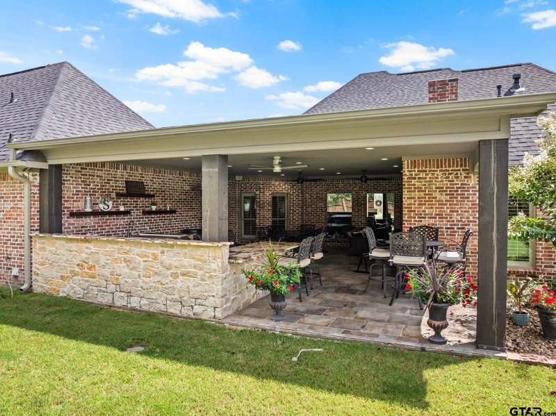 Step into luxury living at this impeccable property in Legacy Park. 3 Bedroom + Office, and 3.5 Bath. From the grand entry to the formal dining room, office, and inviting living room with a cozy fireplace, every detail of this home exudes elegance. The eat-in kitchen is a dream with granite counters, top-of-the-line appliances, and ample cabinetry. The primary suite offers a true retreat with an ensuite bath featuring a soaking tub, glass showers, and dual vanities. Hosting guests is a pleasure with two guest rooms, one featuring its own ensuite, and convenient half bath. Entertain effortlessly on the back porch with a built-in kitchen and bar, while the patio offers a serene spot to unwind and watch the kids play in the fenced yard. This is the perfect home for those who appreciate luxury and comfort in every corner. Don't miss this unprecedented opportunity to own a piece of Legacy Park in Pittsburg!