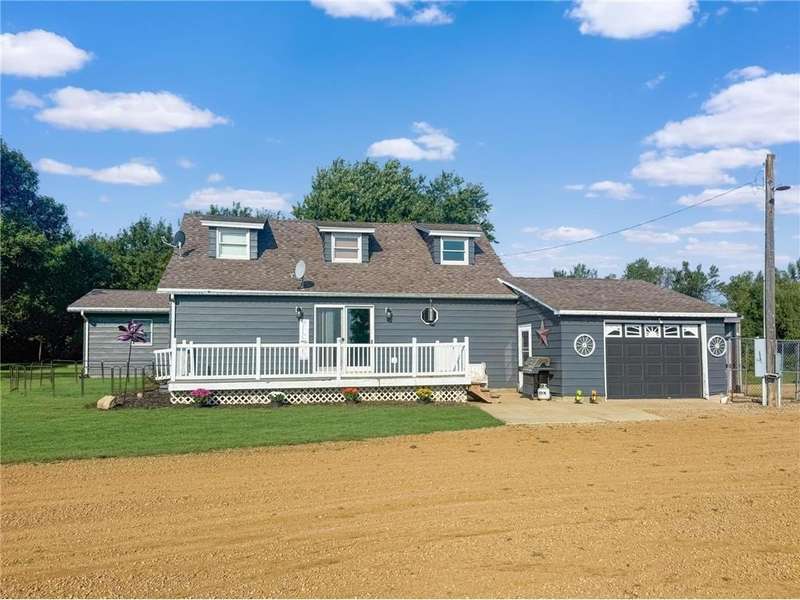 Discover this 15.35 acre farm site on a paved road just outside of Arco, offering over 11 acres of open space for horses or livestock. Enjoy beautiful views of Lake Stay to the East with camping, a swimming beach, picnic shelters, and a playground nearby. The home features aluminum siding, rural water, a compliant septic system, and mechanicals updated just 6 years ago (furnace and A/C). Inside, the main floor has been opened up and includes two newly updated bathrooms, along with a main floor bedroom, full bath, and laundry (2012). An attached garage provides convenience, plus there is a two-stall detached garage with concrete floors. Outbuildings include a 60x64 shed with loft and in-floor heat (¾ concrete floor), a 28x32 granary with lean-to, three grain bins (not currently in use), a cattle shed, and two automatic cow waterers connected to rural water. Electricity has been run to all outbuildings. This property is is a must see, it is well-suited for livestock, storage, and hobbies—all with a comfortable, updated home and great location near Lake Stay.