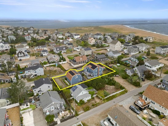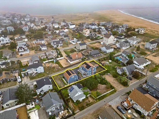 STEPS AWAY FROM BEACH ... This unique offering is located on a dead end street , feet away from the beautiful sandy beach and with the higher elevation you are NOT in a flood zone ! The home has had extensive improvements to all services since ownership . Double lot gives you potential for adding an ADU ( 2nd unit ) subject to approvals and the oversized 2 car garage with workshop area and full 2nd level is great for a recreational / entertainment area or finish fully for a guest suite .The sunfilled custom kitchen / living area is open concept and leads to the oversized deck and yard. Get your relaxation in after a day at the beach in the Swim Spa pool in your private yard . The full basement gives you storage and newer systems . Solar panels help with conserving your energy and keeping costs low - panels are owned and not leased . Enjoy the balcony off of the primary bedroom with ocean views or just open the glass door to listen to the lull of the waves ! Plentiful parking