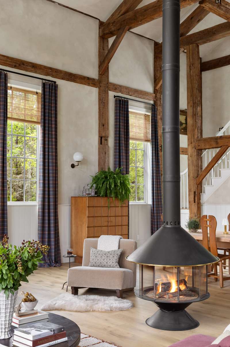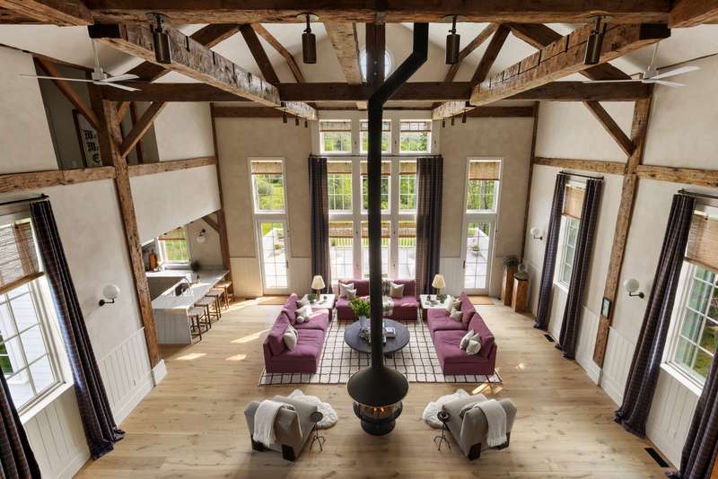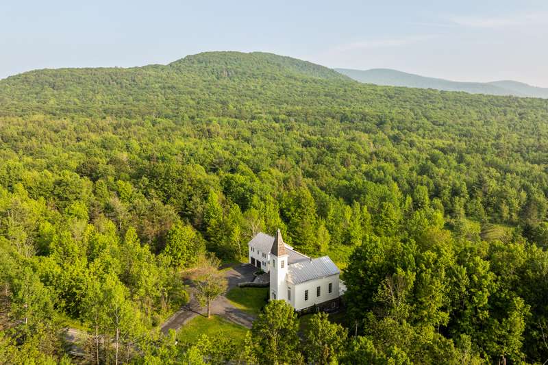 Welcome to Potter Mountain House, a masterfully reimagined Greek Revival church turned luxury designer estate. The original timber-framed structure was constructed in 1837 as the Manorkill Methodist Church, serving its community for over a century before being carefully dismantled and relocated to its current site in Gilboa, NY. Now sited on 37 acres with sweeping Catskill Mountain views, the building began its two-year transformation in 2023 by the boutique design/build firm ICDT Studio into a breathtaking 6,242-square-foot residencehonoring its historic soul while layering in a refined, design-forward sensibility. The result is a one-of-a-kind architectural offering that balances reverence for the past with an intentional, contemporary design ethos.Inside, every detail delivers. The three finished levels are anchored by a soaring Great Room featuring the restored original timber frame, hand-hewn beams, and a full wall of windows that frame the panoramic mountain views. A round, sculptural gas fireplace adds warmth and ambiance between the living and dining spaces, while the chef's kitchen features a 48'' AGA induction range, Fisher & Paykel appliances, Waterworks fixtures, and a stunning stone-clad island. A walk-in pantry accented by reclaimed wood beams and lined with Zellige tile completes the space. The spacious, open layout provides a striking balance of style and function for both daily living and entertaining.Ascending a symmetrical dual staircase, the Great Room opens into a dramatic library loft housed within the home's original church cupola, crowned by an 18-foot long, multi-point glass chandelier and custom floor-to-ceiling bookcases. Just off the dining area, a glass-fronted, 625-bottle refrigerated wine room is enclosed by custom arched iron doors. The home offers five bedrooms and four-and-a-half exquisitely finished baths, each appointed with radiant heat, curated tilework, and an artful mix of stone and marble. The secluded primary suite occupies its own private wing and includes a spa-like bath with soaking tub, dual showers, Bardiglio marble, and double vanities framed by custom glass partitions. The walkout lower level features a secondary living room with wet bar, two guest quarters, built-in bunk room, and a spacious laundry suite with double washers and dryers. Lime-washed walls, wide-plank white oak flooring, and bespoke lighting carry a sense of quiet luxury throughout.Outside, multiple entertaining terraces and an expansive rear deck take full advantage of the natural surroundings, while a stream and seasonal waterfalls enhance the sense of tranquility. Additional features include an attached, heated, two-car garage, all-purpose mudroom, and a backyard master plan already prepared with plans for a future pool. Just 20 minutes from Windham Mountain Club, under an hour to Hudson and Albany, and a little over two hours from NYC, Potter Mountain House offers sanctuary, scale, and elevated design. A fully furnished option is also available, providing a true turnkey experience for effortless move-in. Unlike anything else on the marketdistinctive, historic, and telling a story entirely its own.